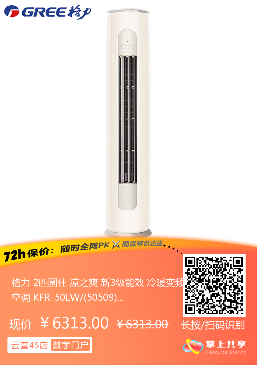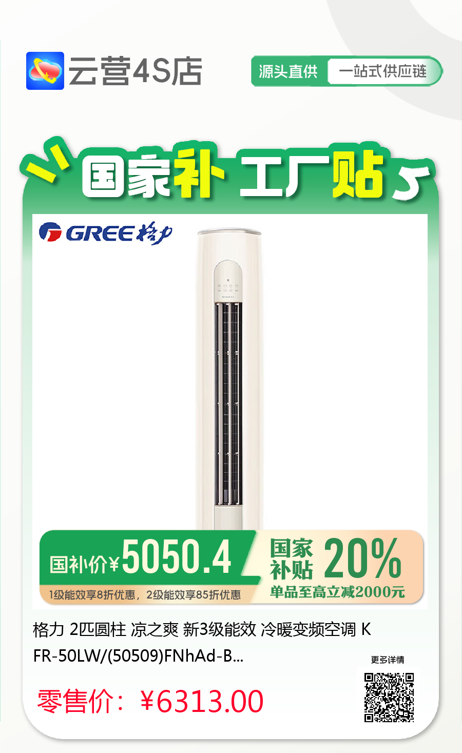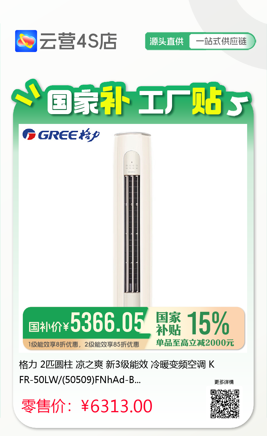 格力 2匹圆柱 凉之爽 新3级能效 冷暖变频空调 KFR-50LW/(50509)FNhAd-B3(WIFI)(奶茶玉)