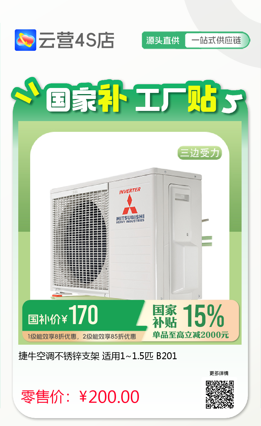 捷牛空调不锈锌支架 适用1~1.5匹 B201