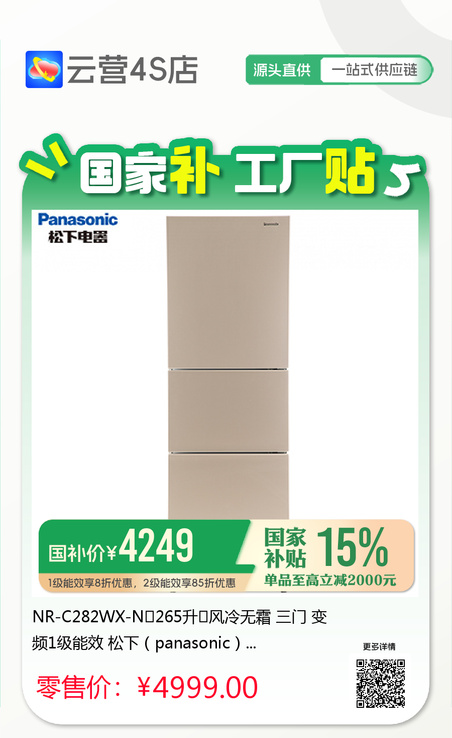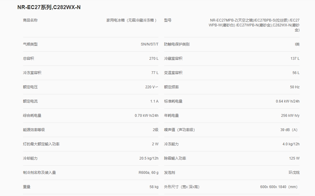NR-C282WX-N 265升 风冷无霜 三门 变频1级能效 松下(panasonic)