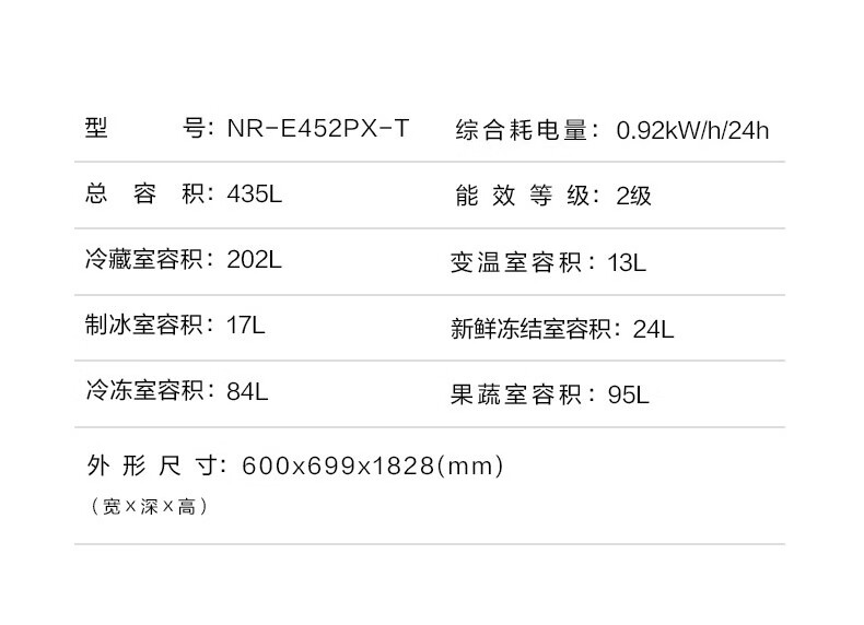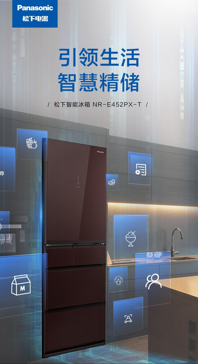 NR-E452PX-T 435升 风冷无霜 自由嵌入多门 无锡制 变频1级能效 松下(panasonic)