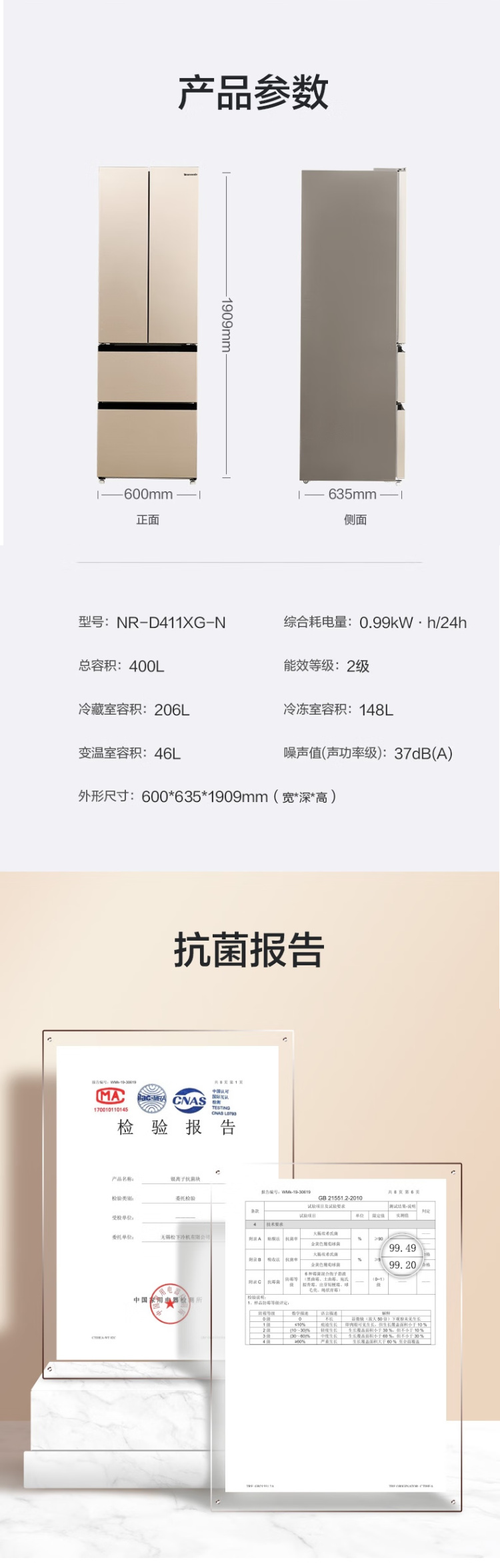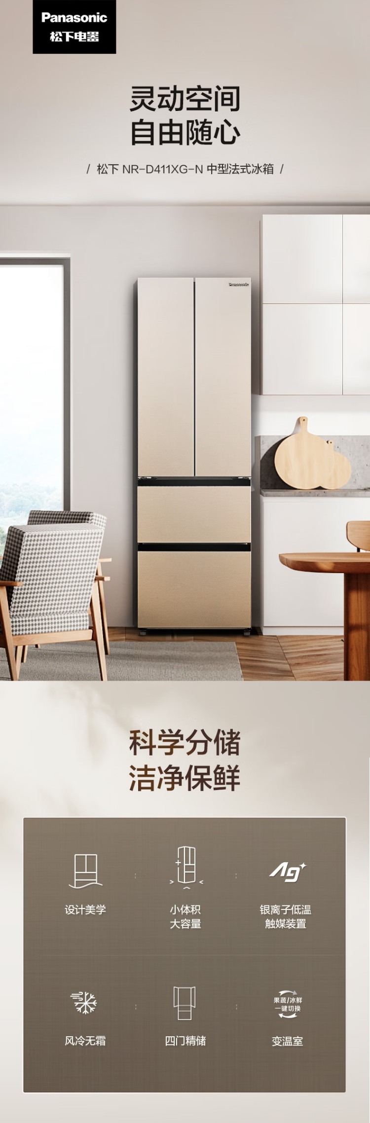 NR-D411XG-N 400升 风冷无霜 自由嵌入多门 无锡制 变频1级能效 松下(panasonic)