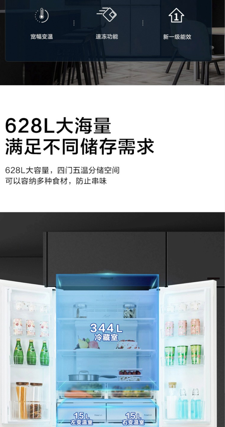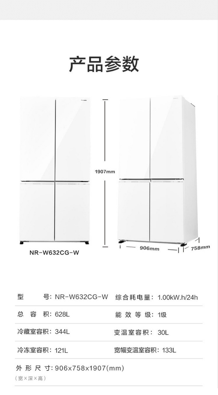 松下法式变频冰箱 628升 风冷无霜 1级能效 NR-F673WX-X5