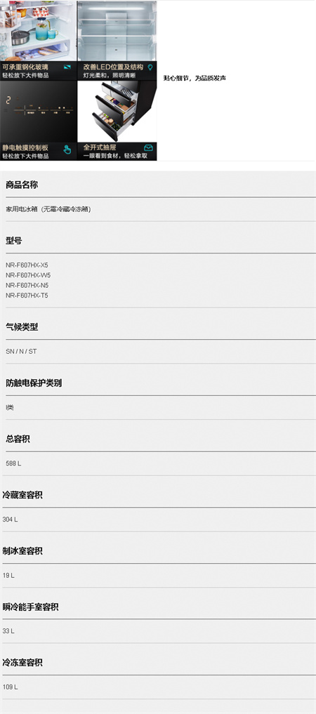 NR-F607HX-N5 588升 风冷无霜 日本进口多门 变频1级能效 松下(panasonic)
