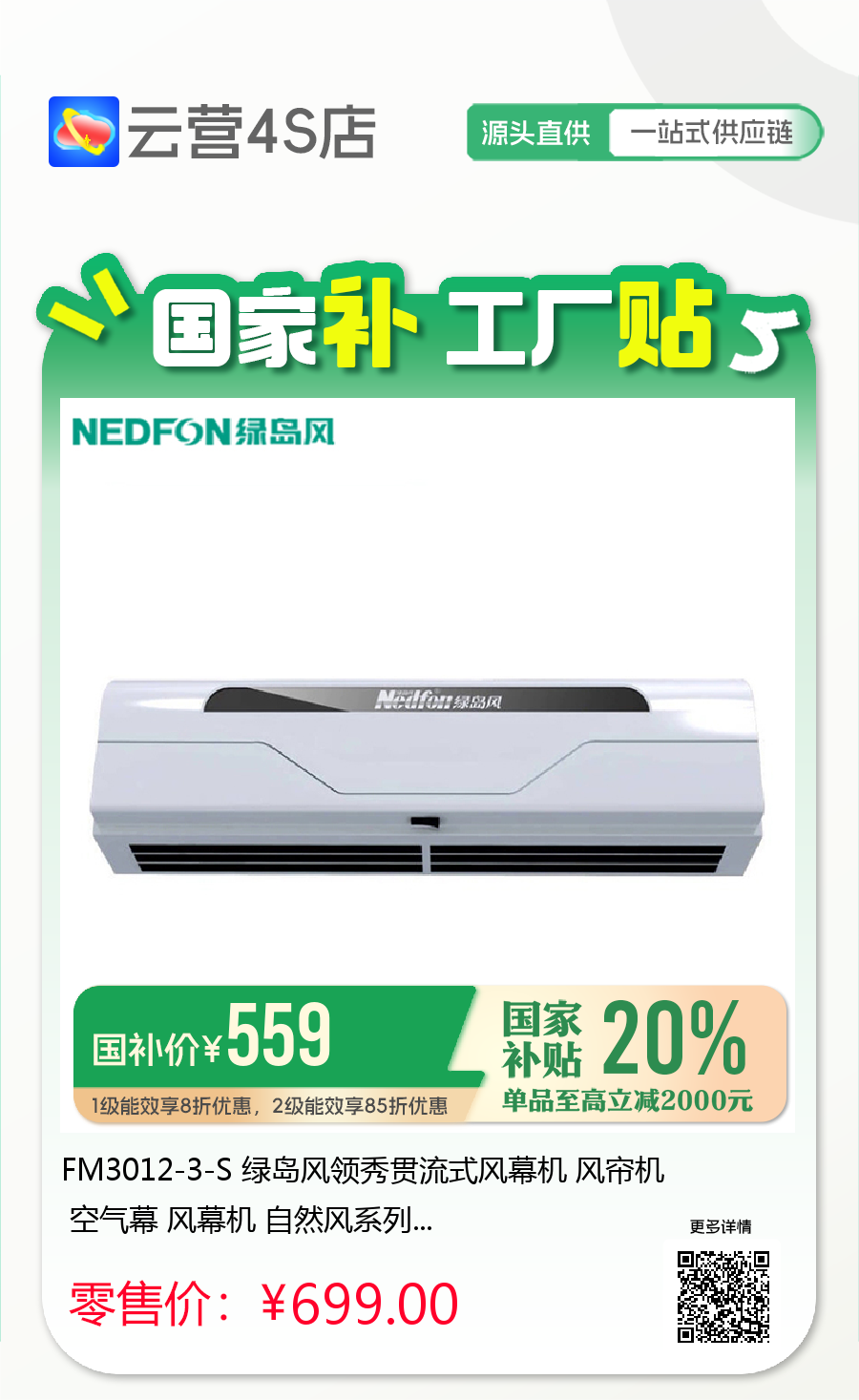 FM3012-3-S 绿岛风领秀贯流式风幕机 风帘机 空气幕 风幕机 自然风系列