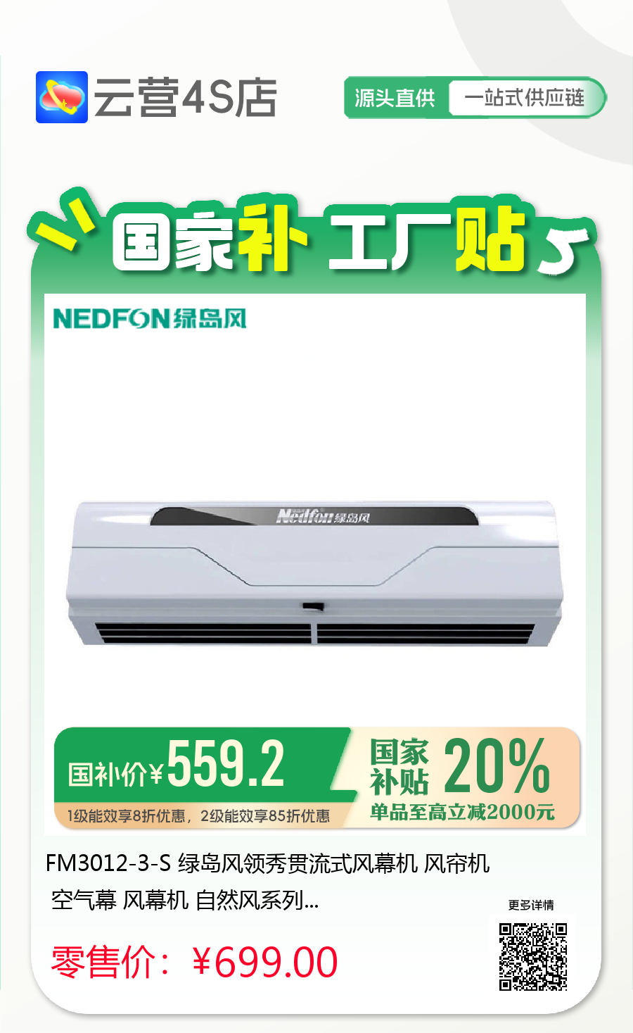 FM3012-3-S 绿岛风领秀贯流式风幕机 风帘机 空气幕 风幕机 自然风系列