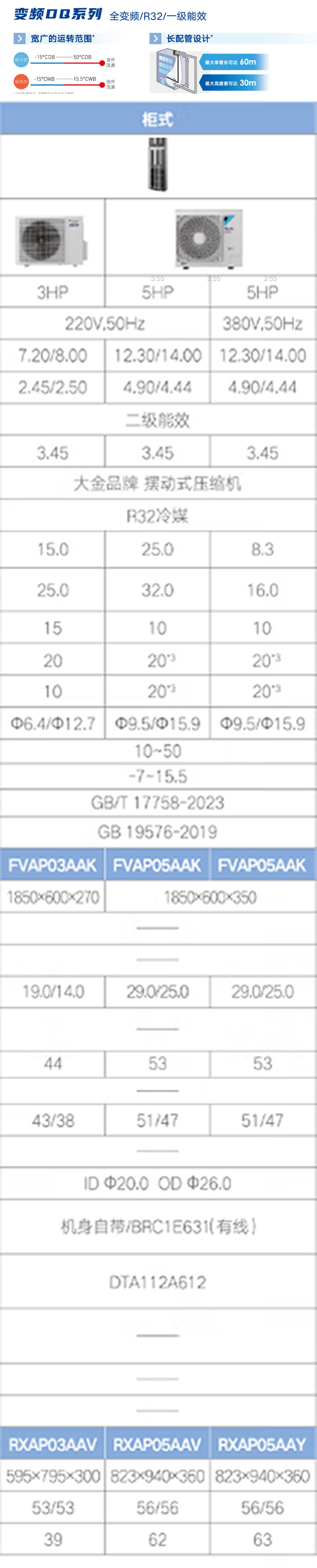 FVAP05AAK 380V 5匹 2级能效 变频冷暖 大功率 大金空调