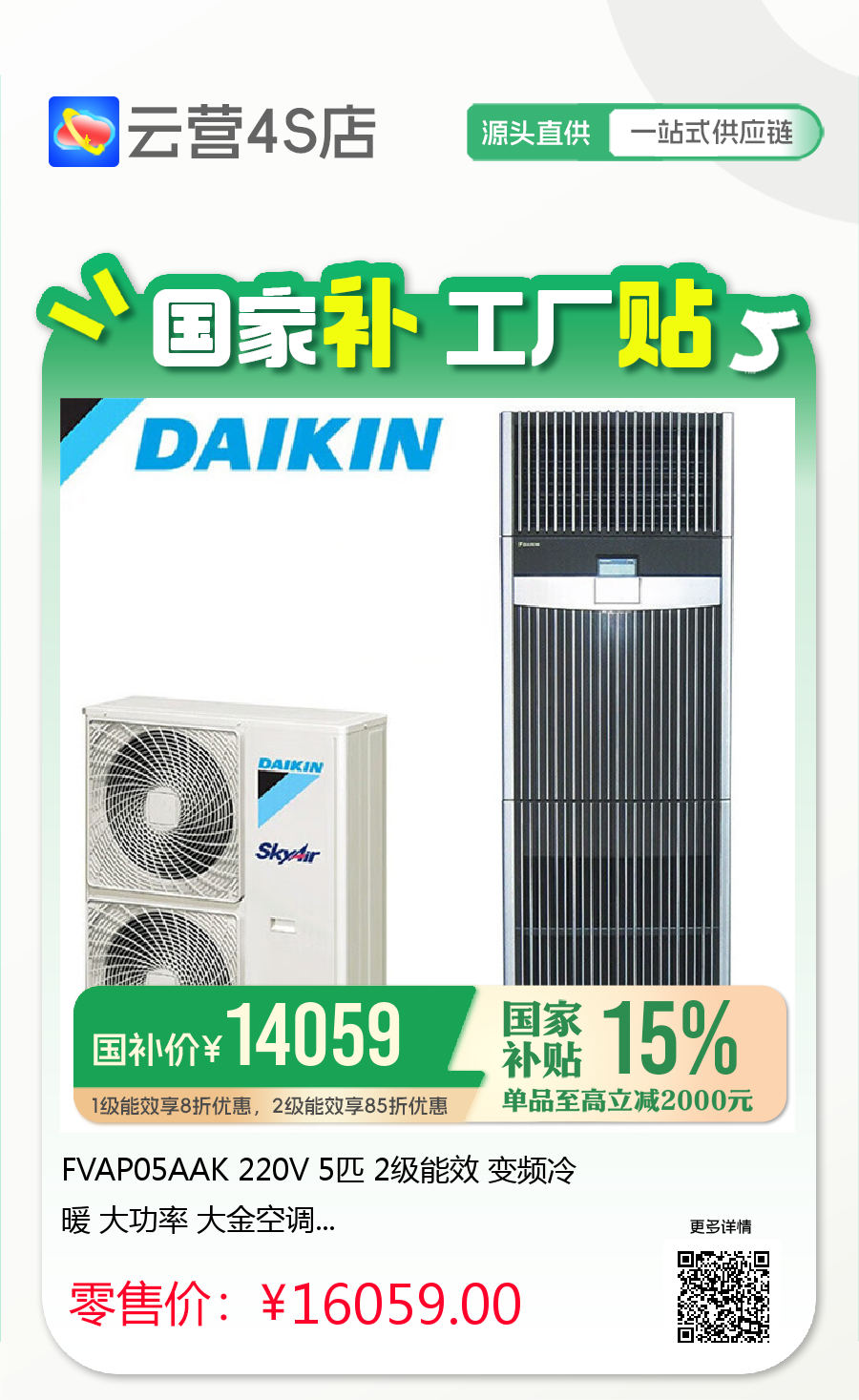 FVAP05AAK 220V 5匹 2级能效 变频冷暖 大功率 大金空调