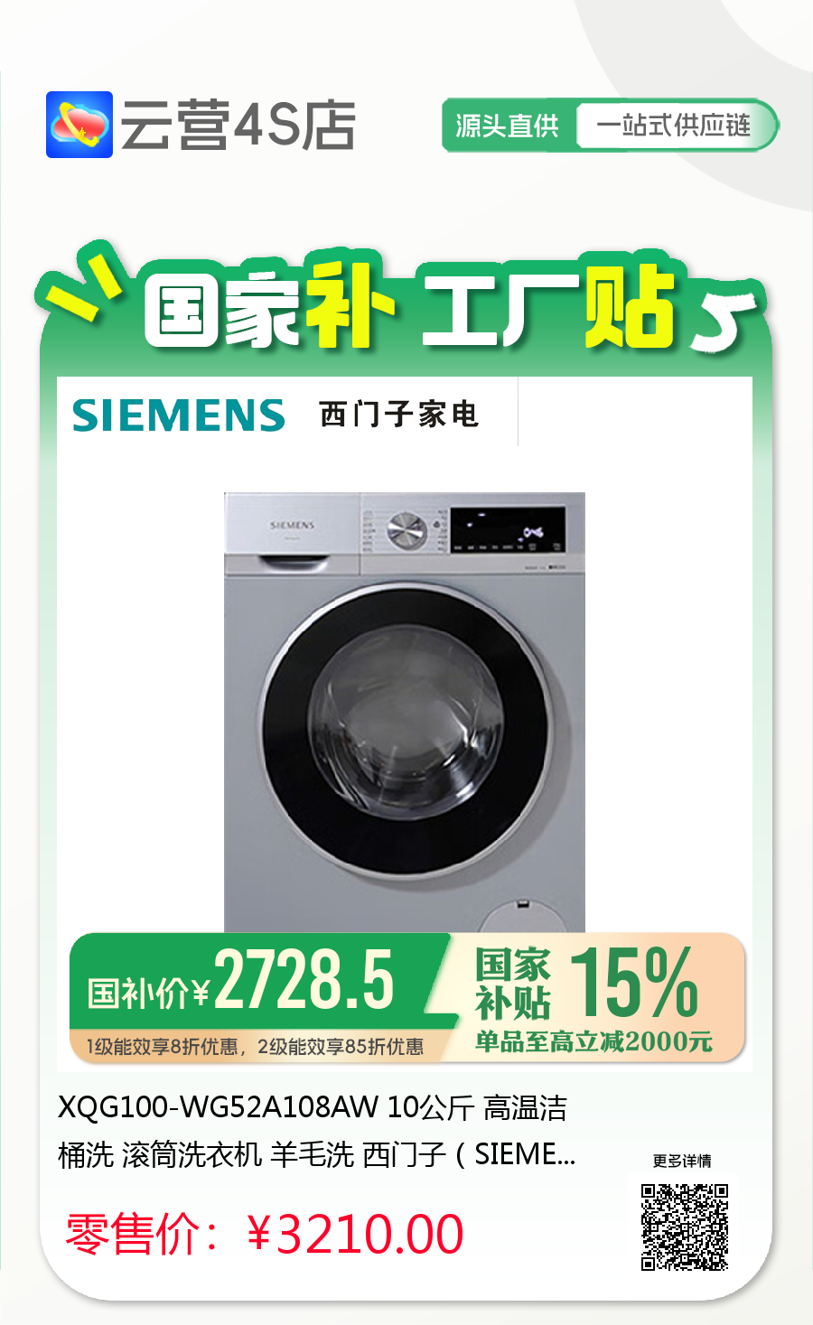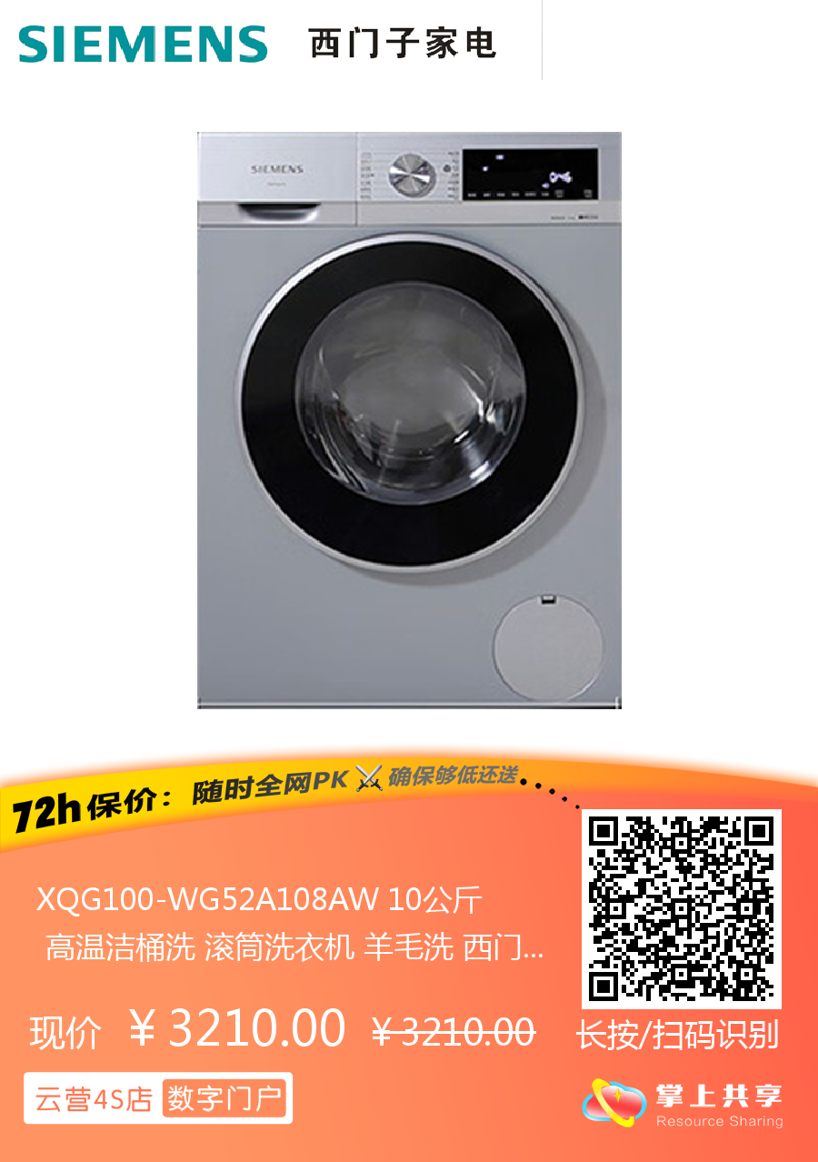 XQG100-WG52A108AW 10公斤 高温洁桶洗 滚筒洗衣机 羊毛洗 西门子(SIEMENS)