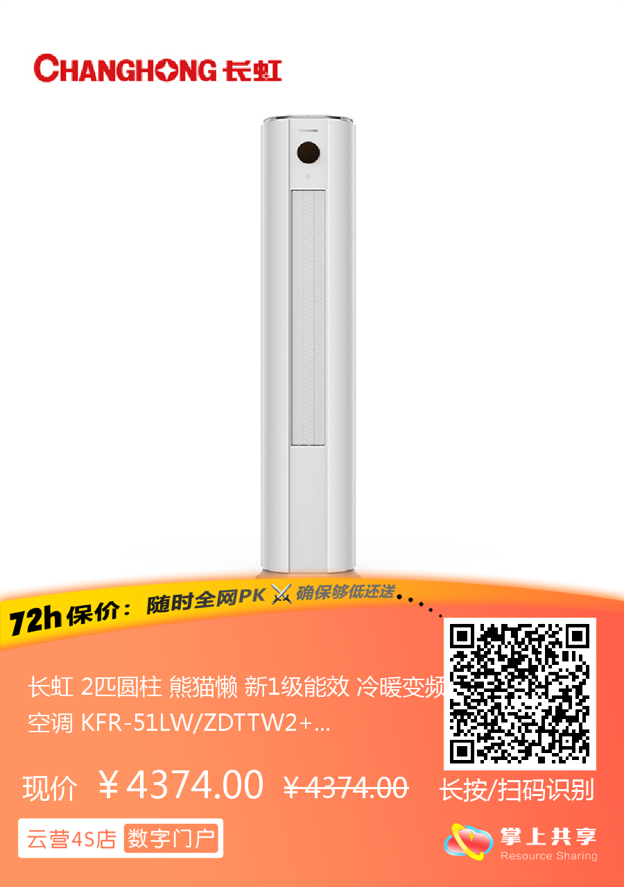 长虹 2匹圆柱 熊猫懒 新1级能效 冷暖变频空调 KFR-51LW/ZDTTW2+R1