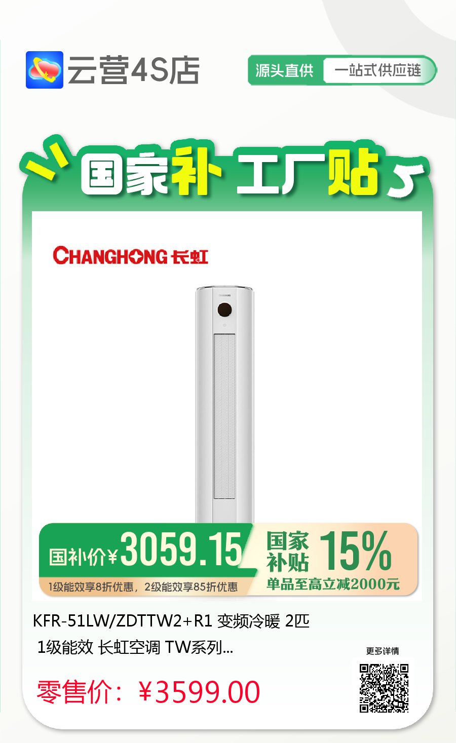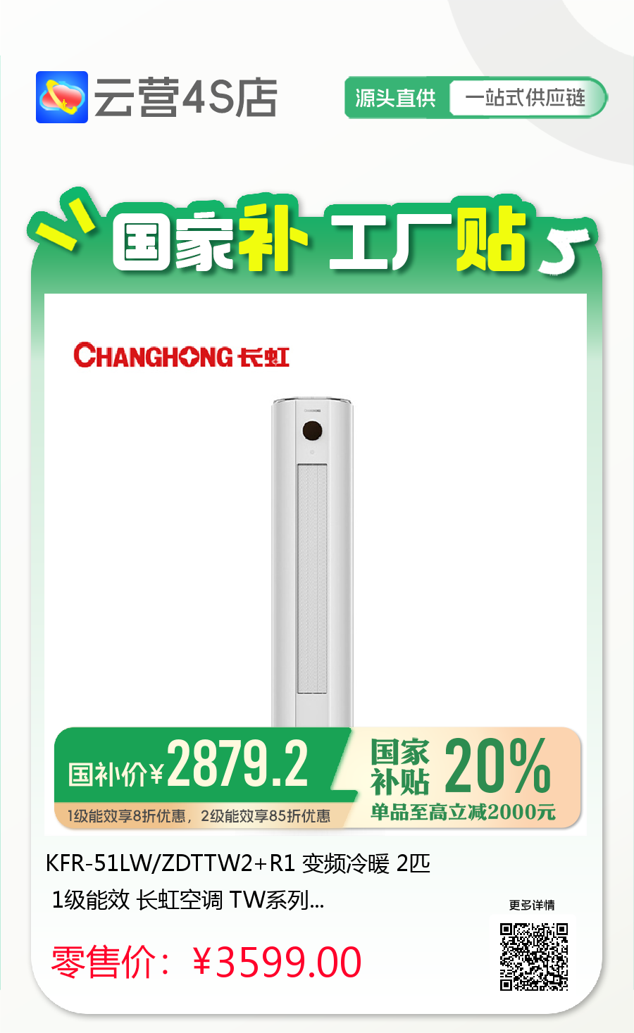 长虹 2匹圆柱 熊猫懒 新1级能效 冷暖变频空调 KFR-51LW/ZDTTW2+R1
