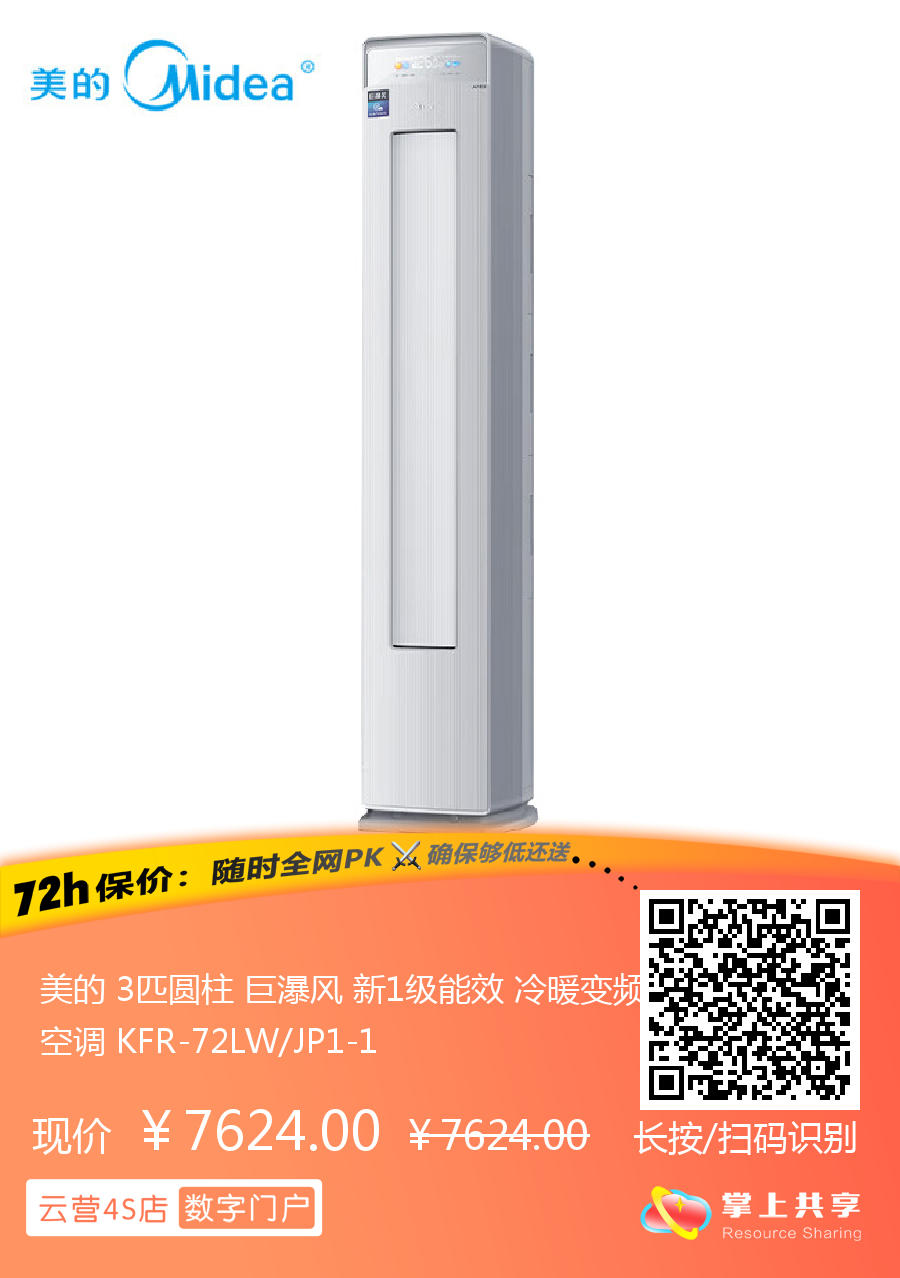 美的 3匹圆柱 巨瀑风 新1级能效 冷暖变频空调 KFR-72LW/JP1-1