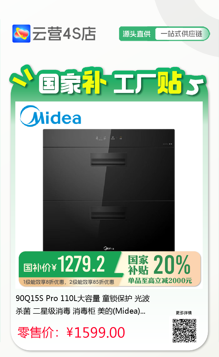 90Q15S Pro 110L大容量 童锁保护 光波杀菌 二星级消毒 消毒柜 美的(Midea)