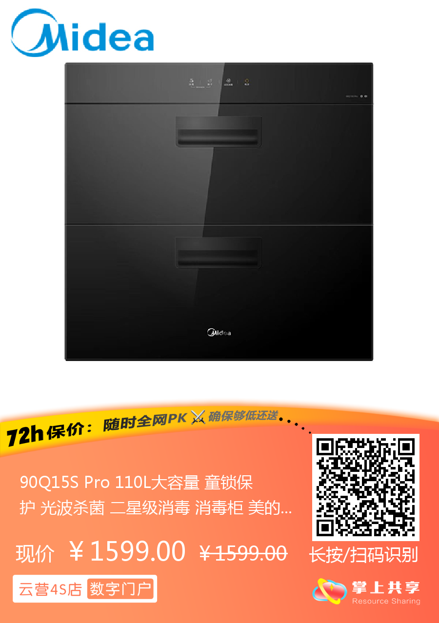 90Q15S Pro 110L大容量 童锁保护 光波杀菌 二星级消毒 消毒柜 美的(Midea)