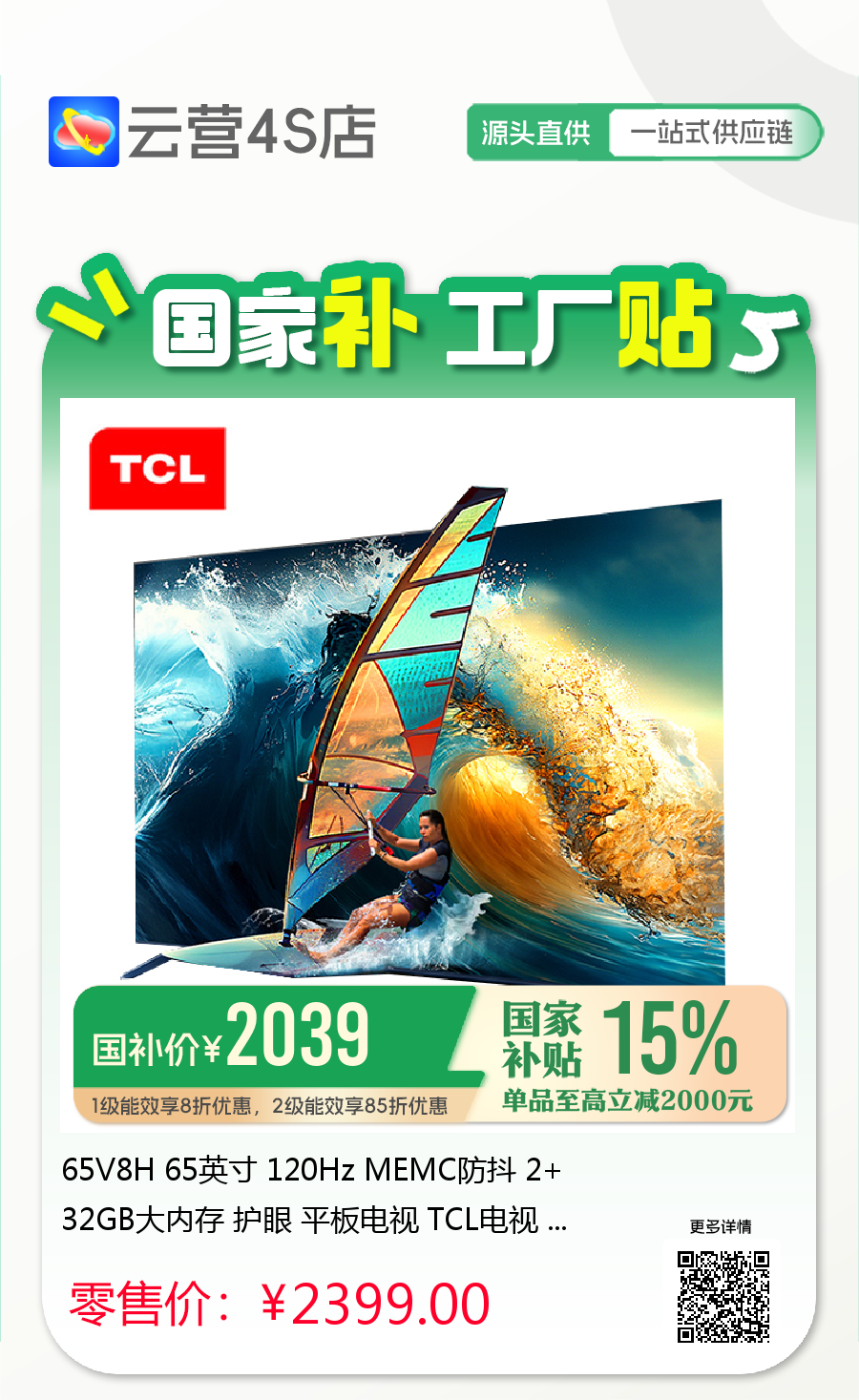 65V8H 65英寸 120Hz MEMC防抖 2+32GB大内存 护眼 平板电视 TCL电视