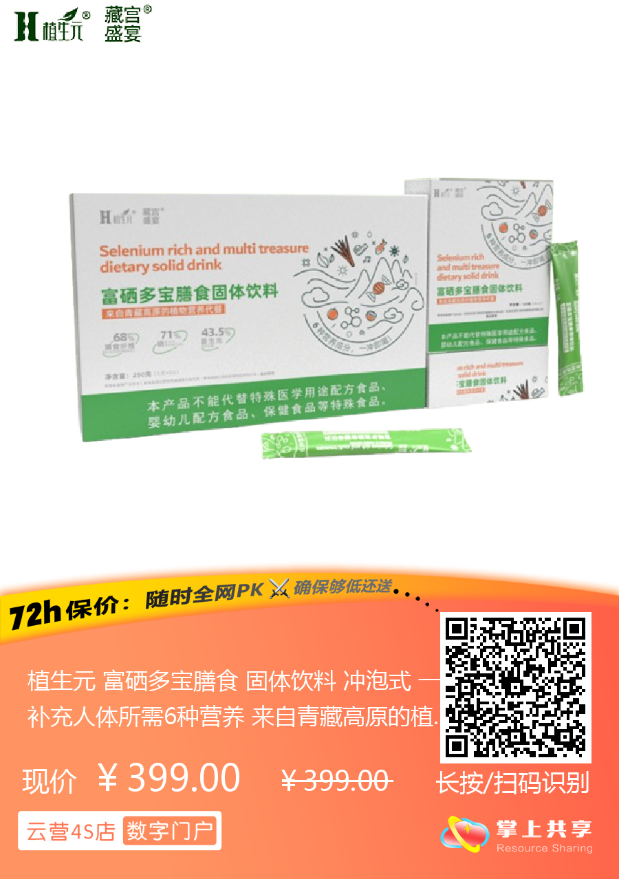 植生元 富硒多宝膳食 固体饮料 冲泡式 一袋补充人体所需6种营养 来自青藏高原的植物营养代餐