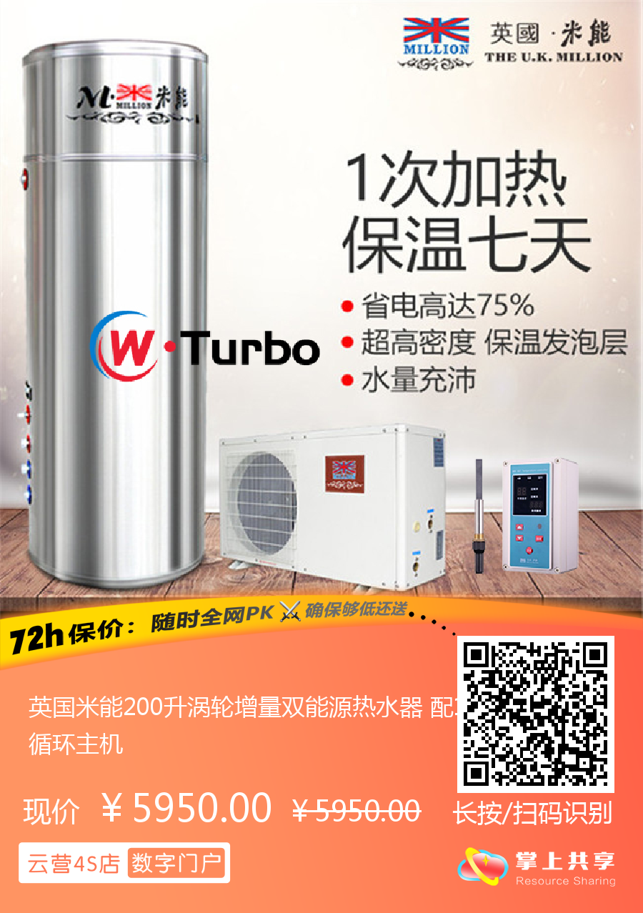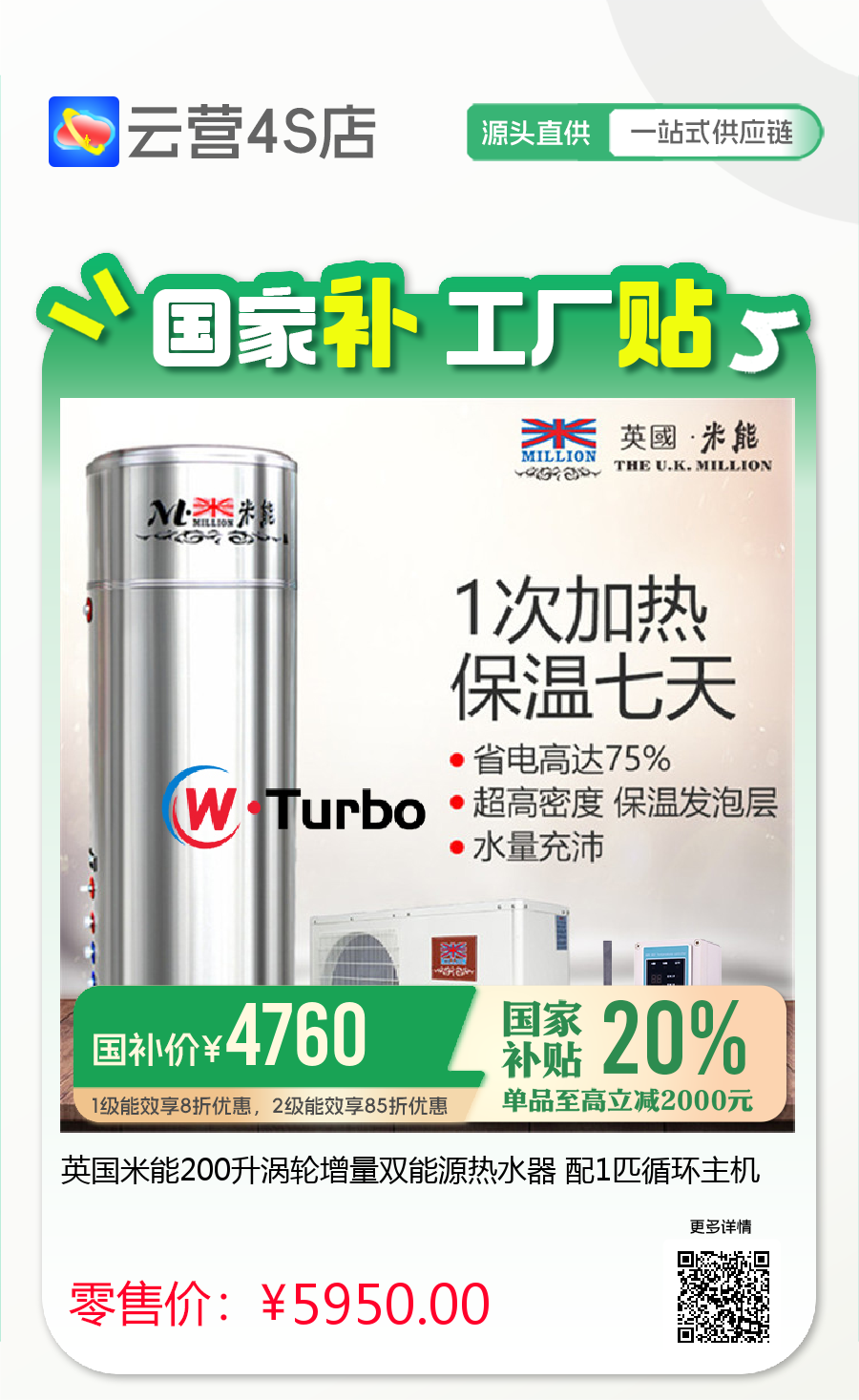 英国米能200升涡轮增量双能源热水器 配1匹循环主机