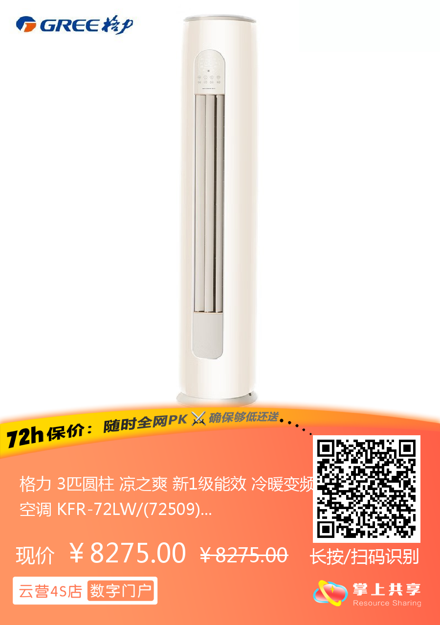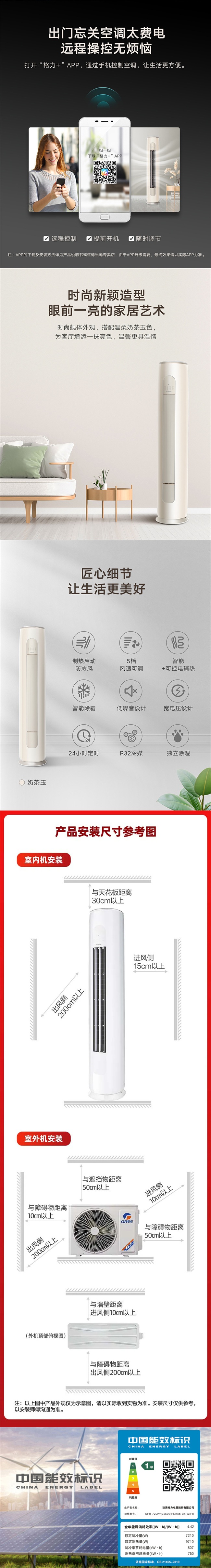 格力 3匹圆柱 凉之爽 新1级能效 冷暖变频空调 KFR-72LW/(72509)FNhAb-B1(WIFI)(奶茶玉)