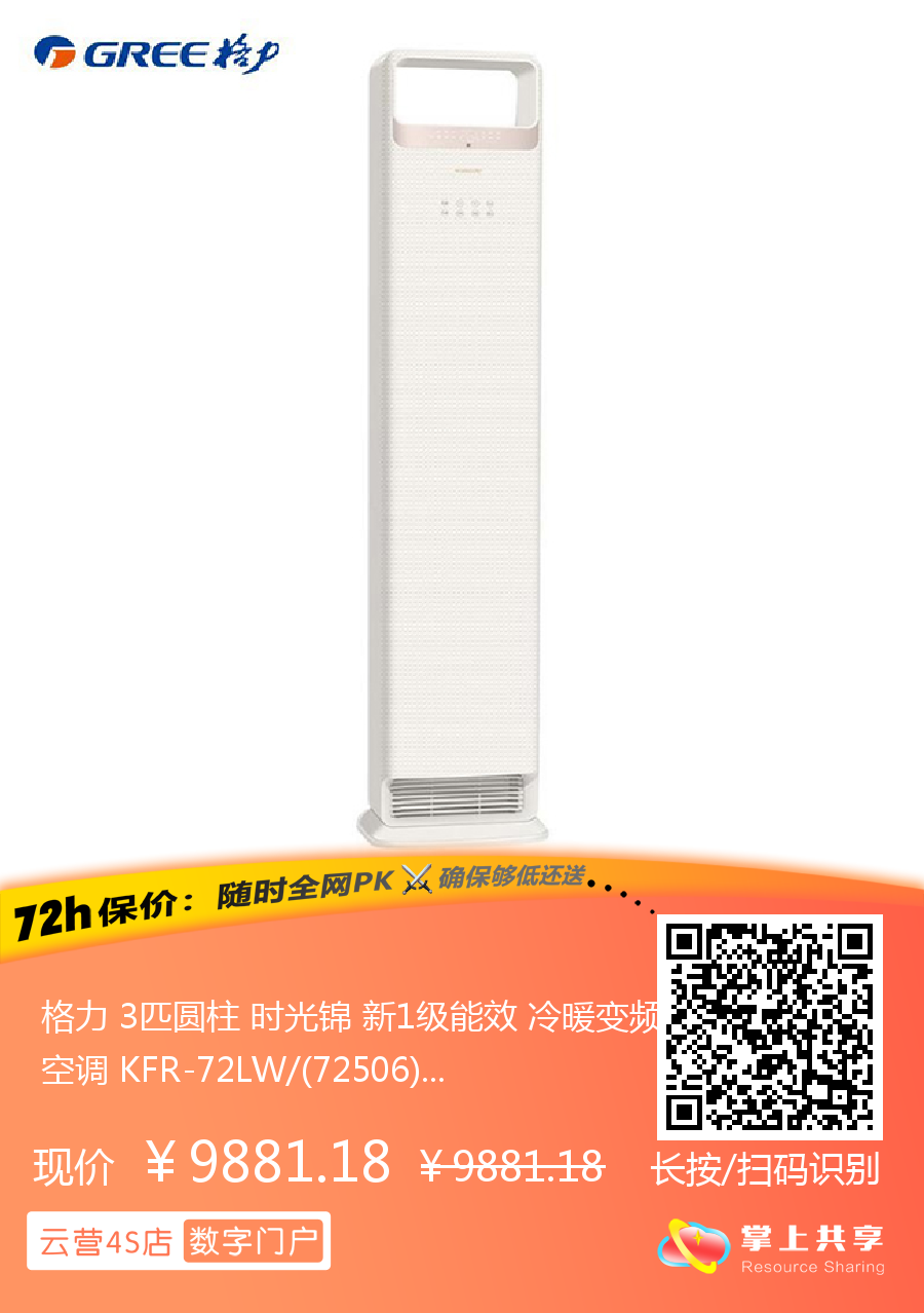 格力 3匹圆柱 时光锦 新1级能效 冷暖变频空调 KFR-72LW/(72506)FNhAa-B1(WIFI)(格调米)