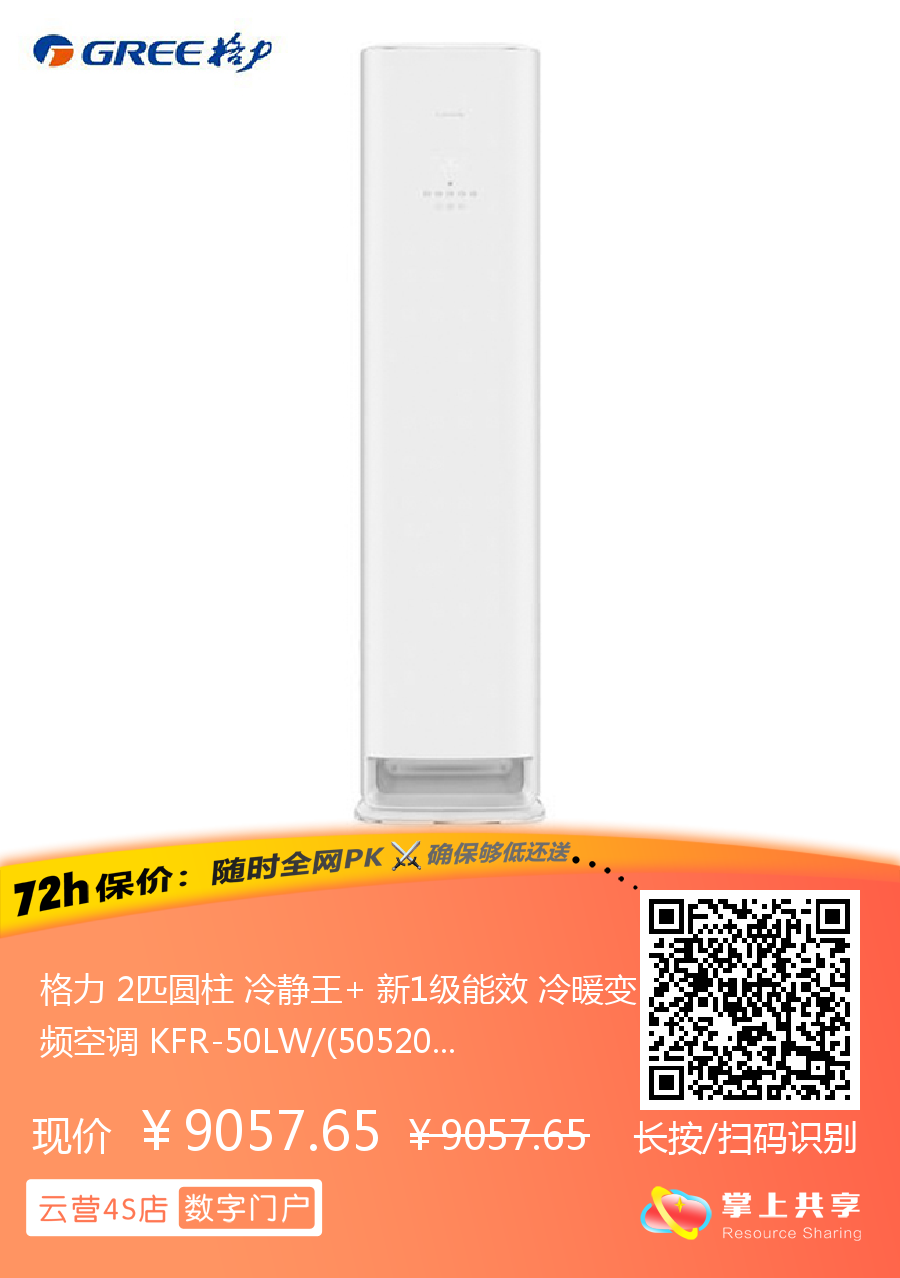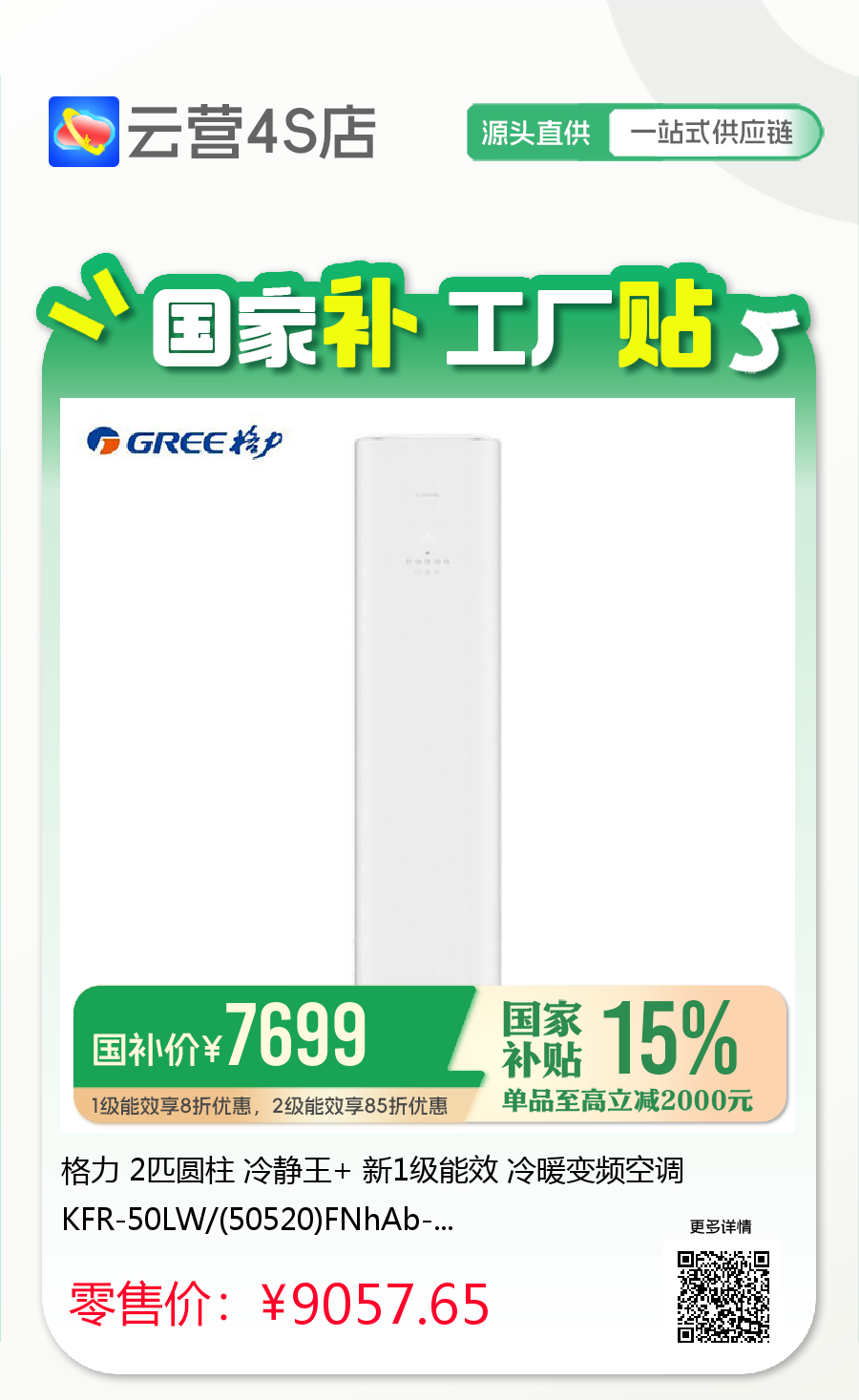 格力 2匹圆柱 冷静王+ 新1级能效 冷暖变频空调 KFR-50LW/(50520)FNhAb-B1(WIFI)(铂金白)