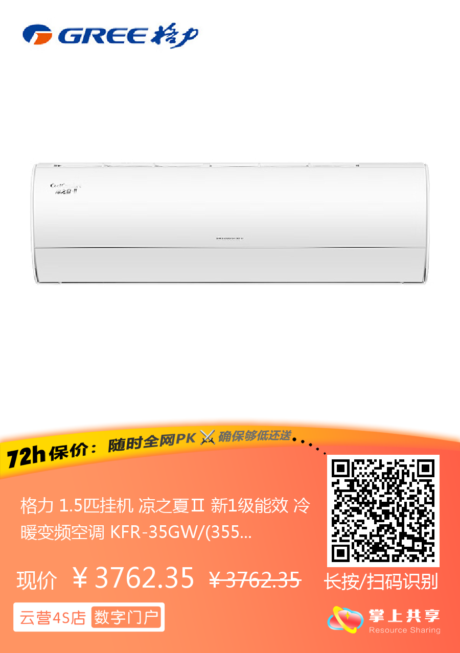 格力 1.5匹挂机 凉之夏Ⅱ 新1级能效 冷暖变频空调 KFR-35GW/(35598)FNhAa-B1(WIFI)(温馨白)
