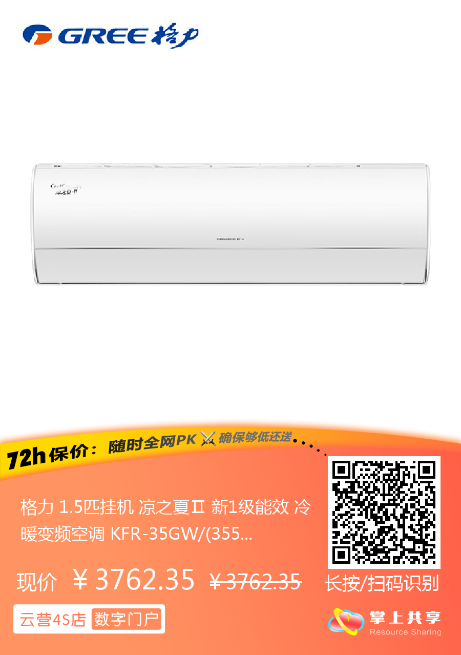 格力 1.5匹挂机 凉之夏Ⅱ 新1级能效 冷暖变频空调 KFR-35GW/(35598)FNhAa-B1(WIFI)(温馨白)