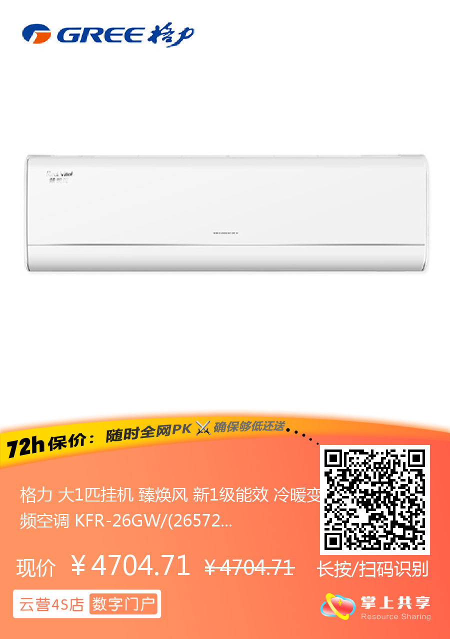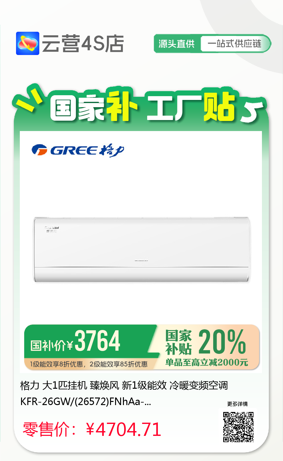 格力 大1匹挂机 臻焕风 新1级能效 冷暖变频空调 KFR-26GW/(26572)FNhAa-B1(WIFI)(温馨白)