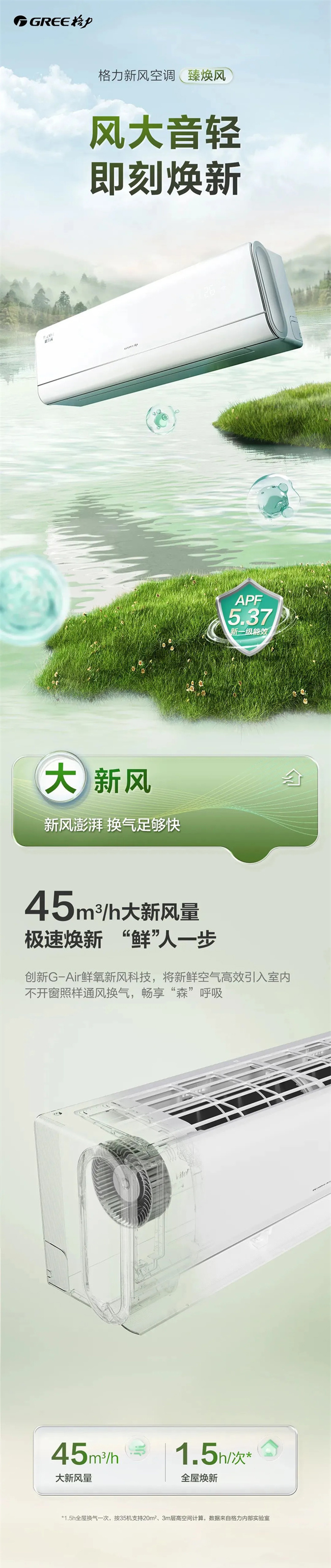 格力 大1匹挂机 臻焕风 新1级能效 冷暖变频空调 KFR-26GW/(26572)FNhAa-B1(WIFI)(温馨白)