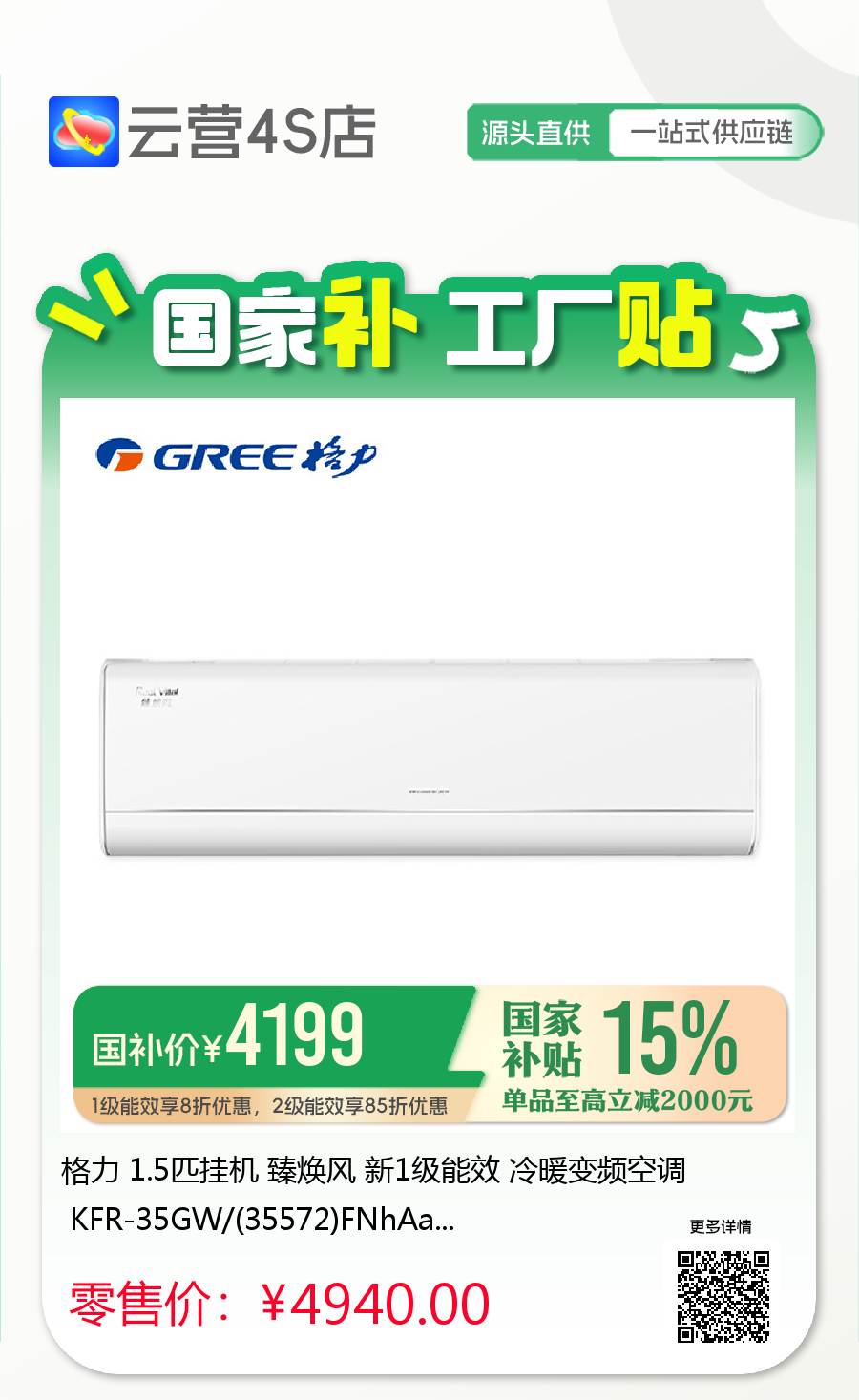 格力 1.5匹挂机 臻焕风 新1级能效 冷暖变频空调 KFR-35GW/(35572)FNhAa-B1(WIF1)(温馨白)