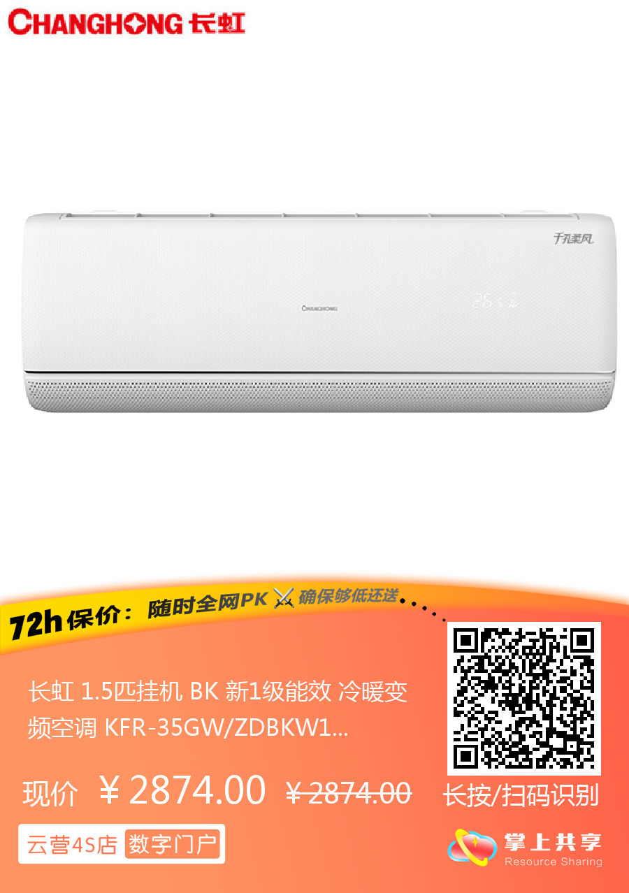 长虹 1.5匹挂机 BK 新1级能效 冷暖变频空调 KFR-35GW/ZDBKW1+R1