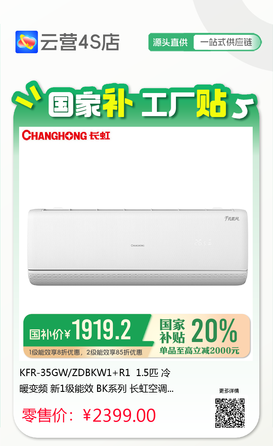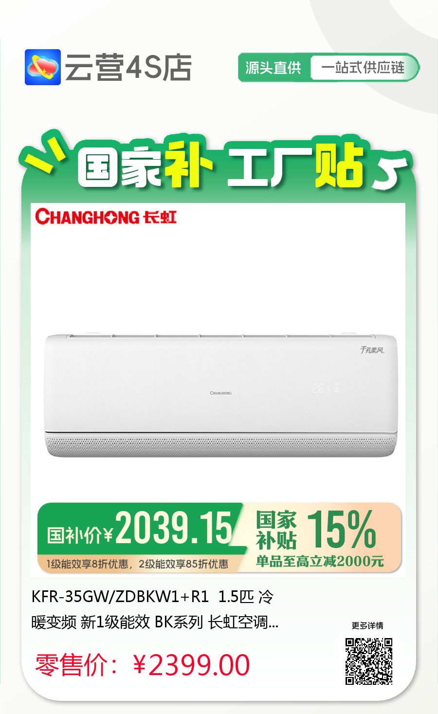 1级能效享8折优惠,2级能效享85折优惠