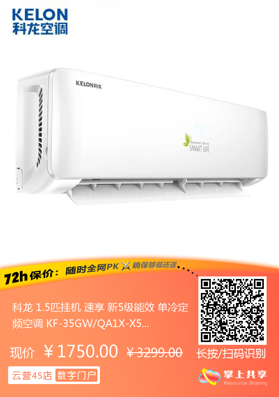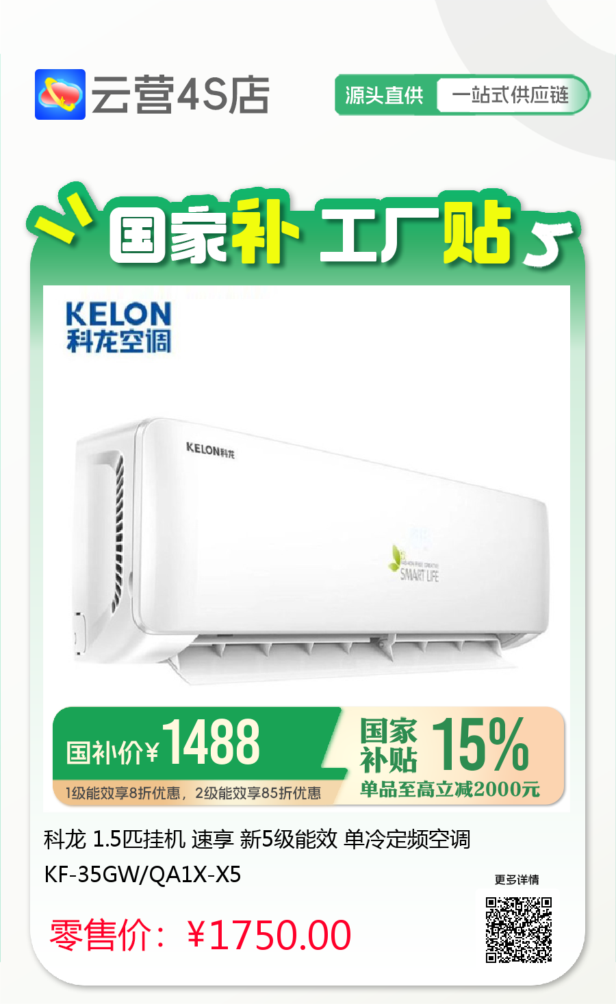 科龙 1.5匹挂机 速享 新5级能效 单冷定频空调 KF-35GW/QA1X-X5