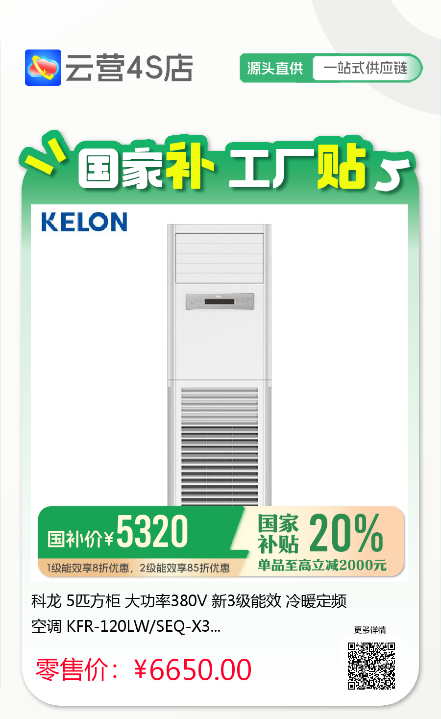 科龙 5匹方柜 大功率380V 新3级能效 冷暖定频空调 KFR-120LW/SEQ-X3