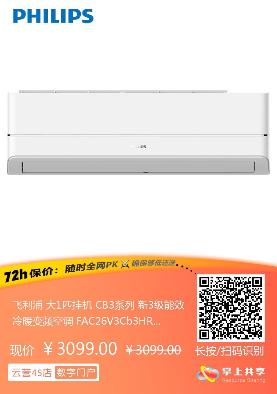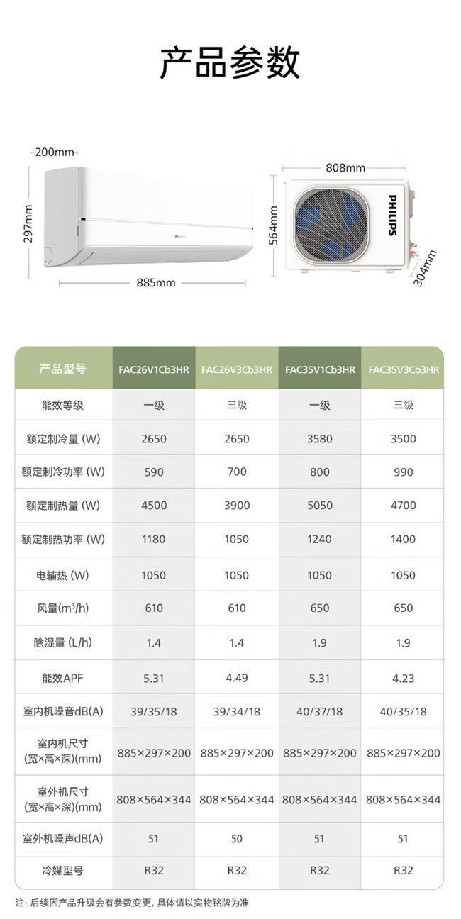 飞利浦 大1匹挂机 CB3系列 新3级能效 冷暖变频空调 FAC26V3Cb3HR