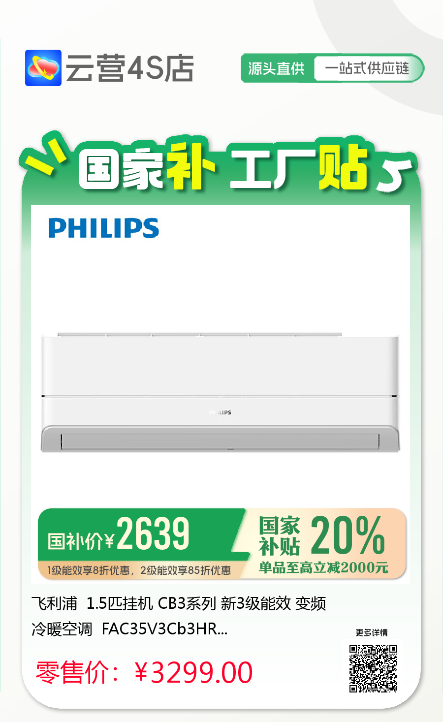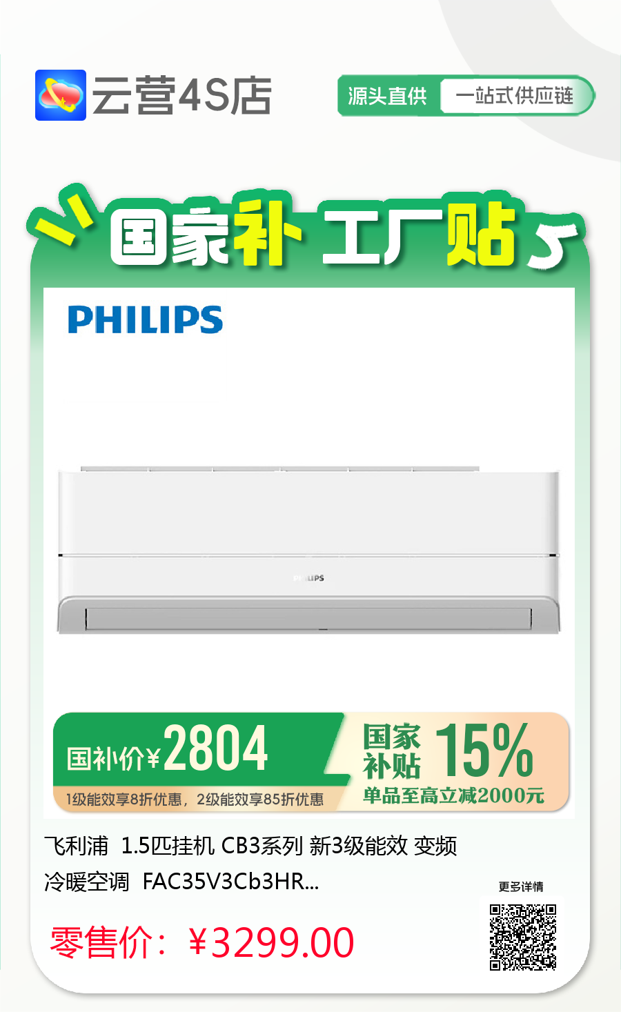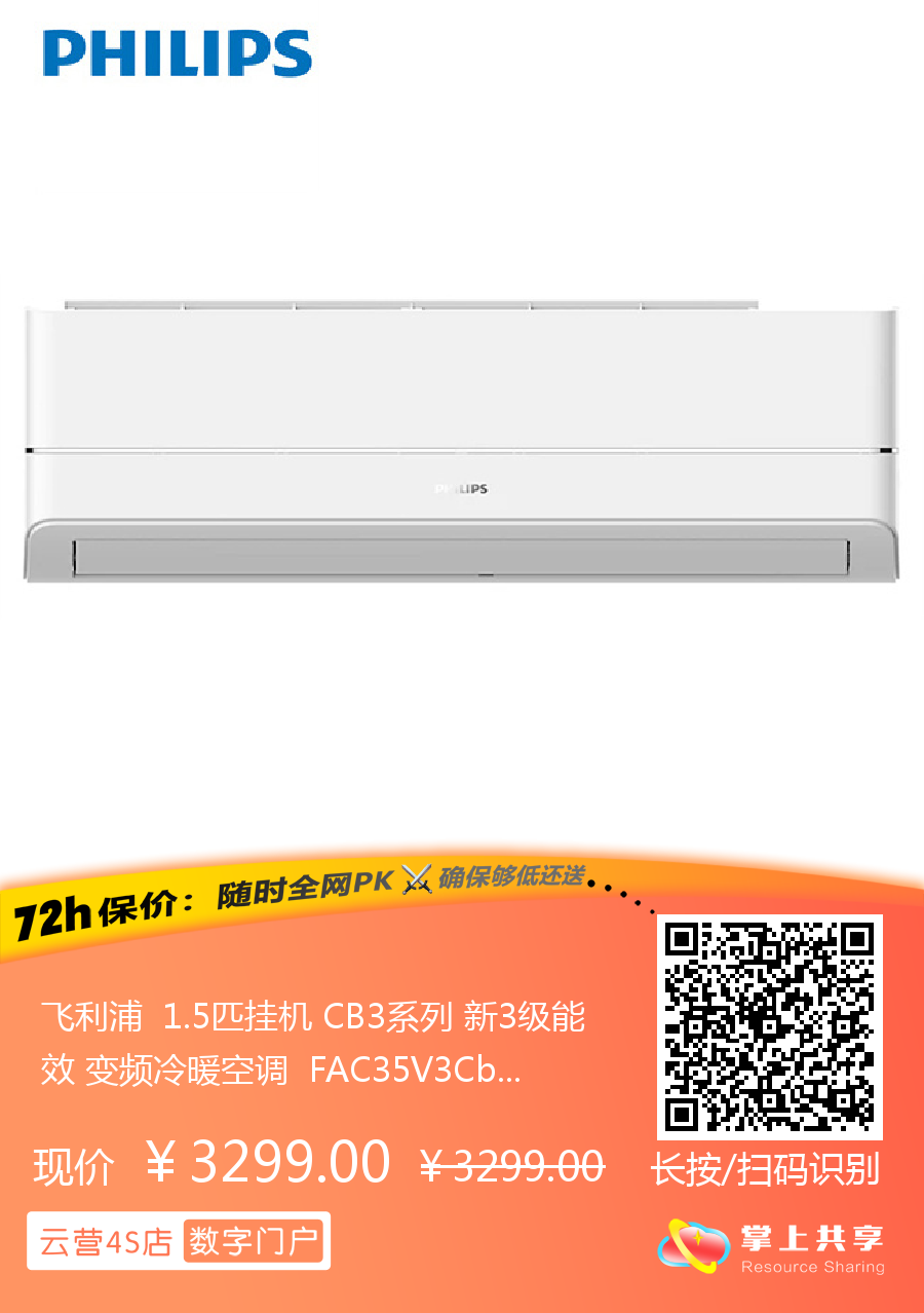飞利浦 1.5匹挂机 CB3系列 新3级能效 变频冷暖空调 FAC35V3Cb3HR