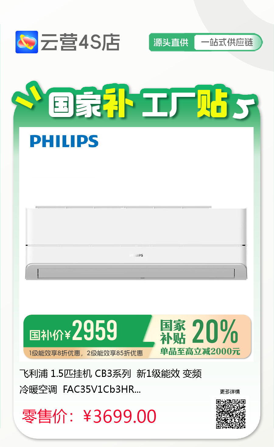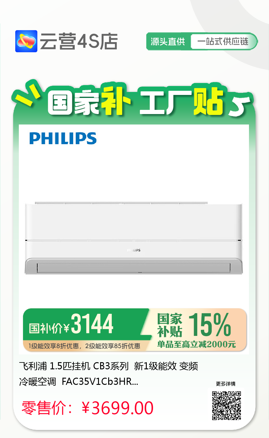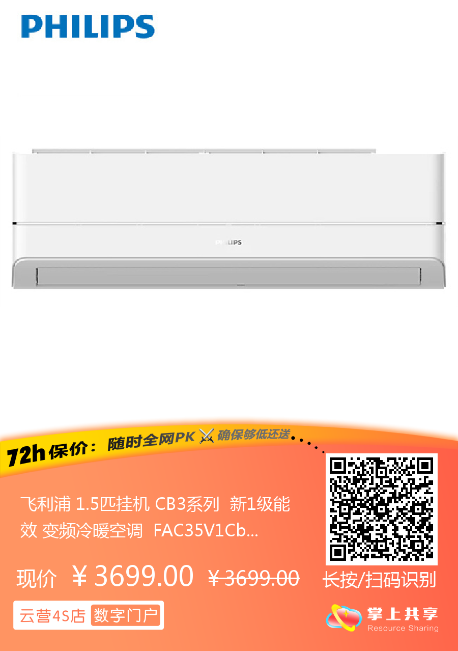 飞利浦 1.5匹挂机 CB3系列 新1级能效 变频冷暖空调 FAC35V1Cb3HR