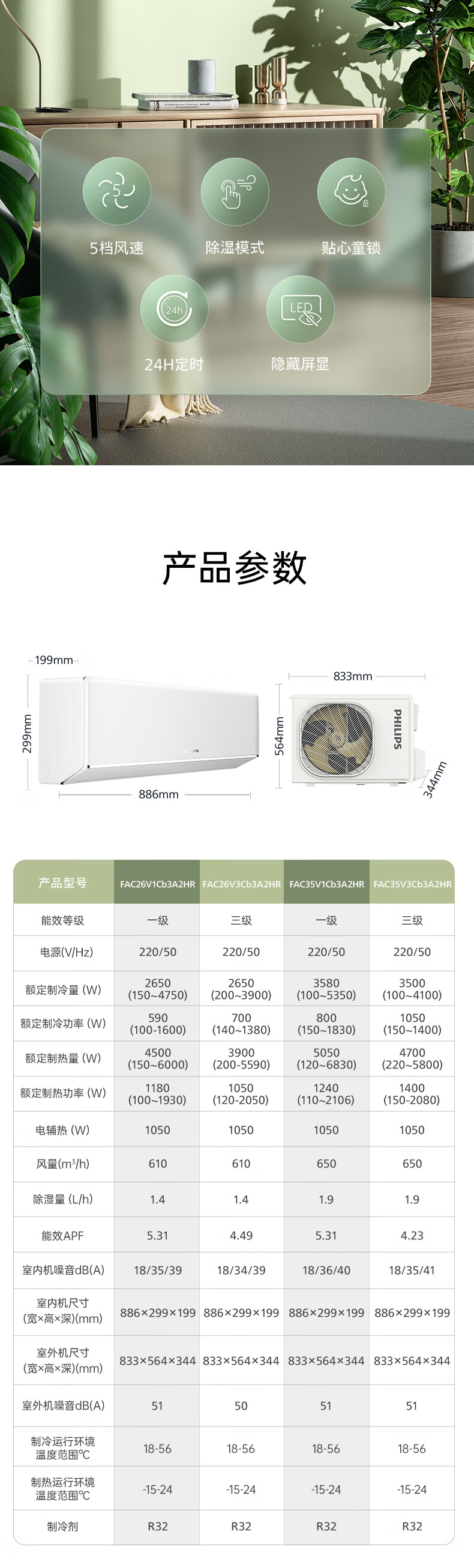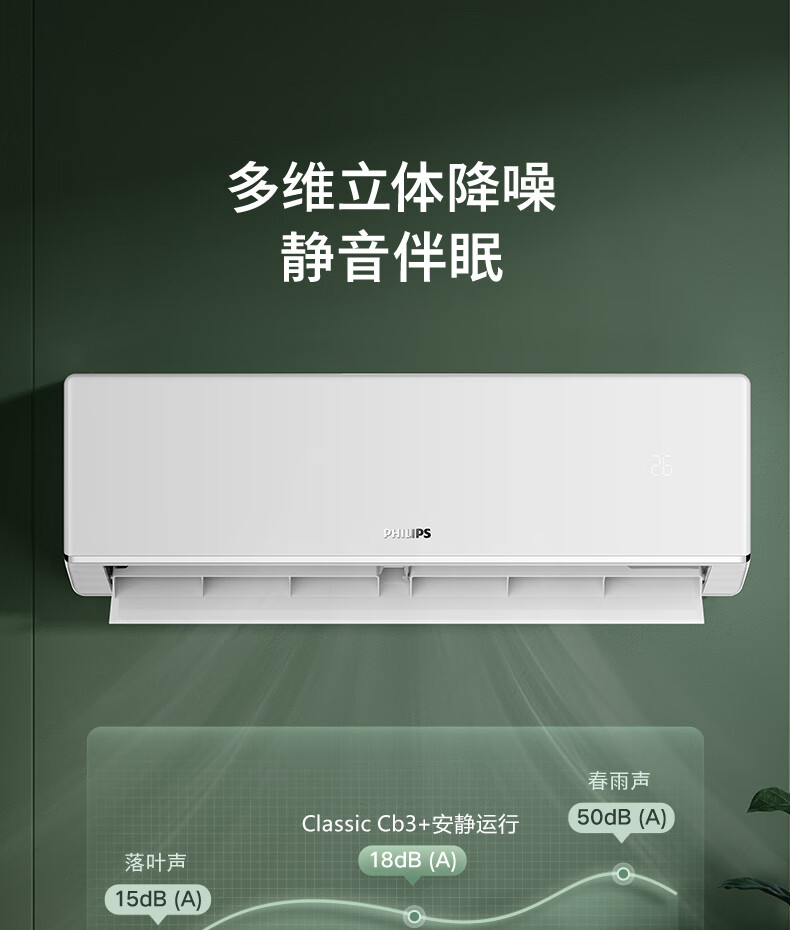 飞利浦 大1匹挂机 CB3+系列 新1级能效 冷暖变频空调 FAC26V1Cb3A2HR