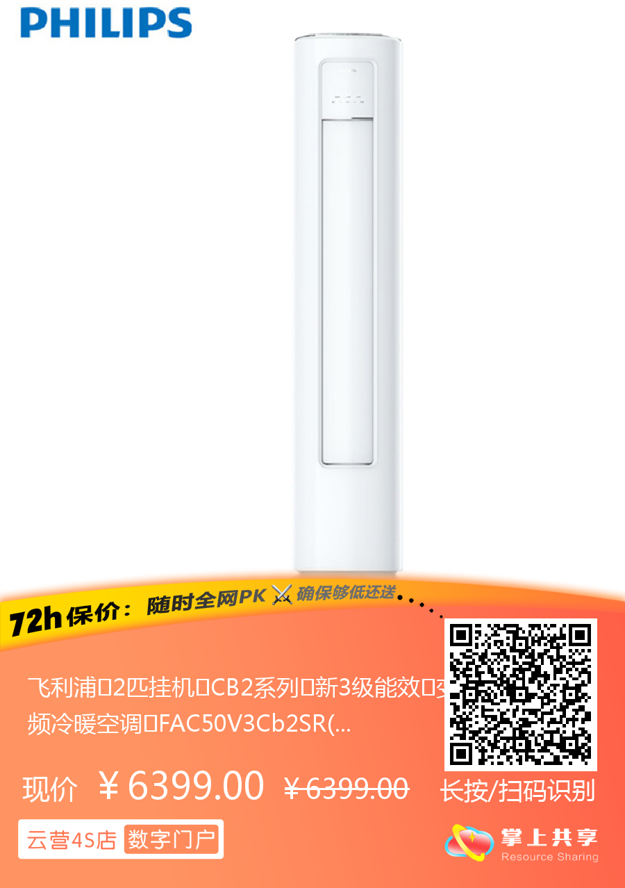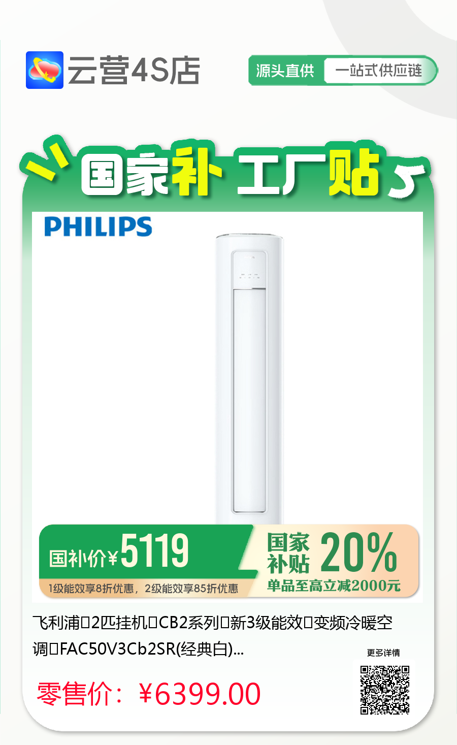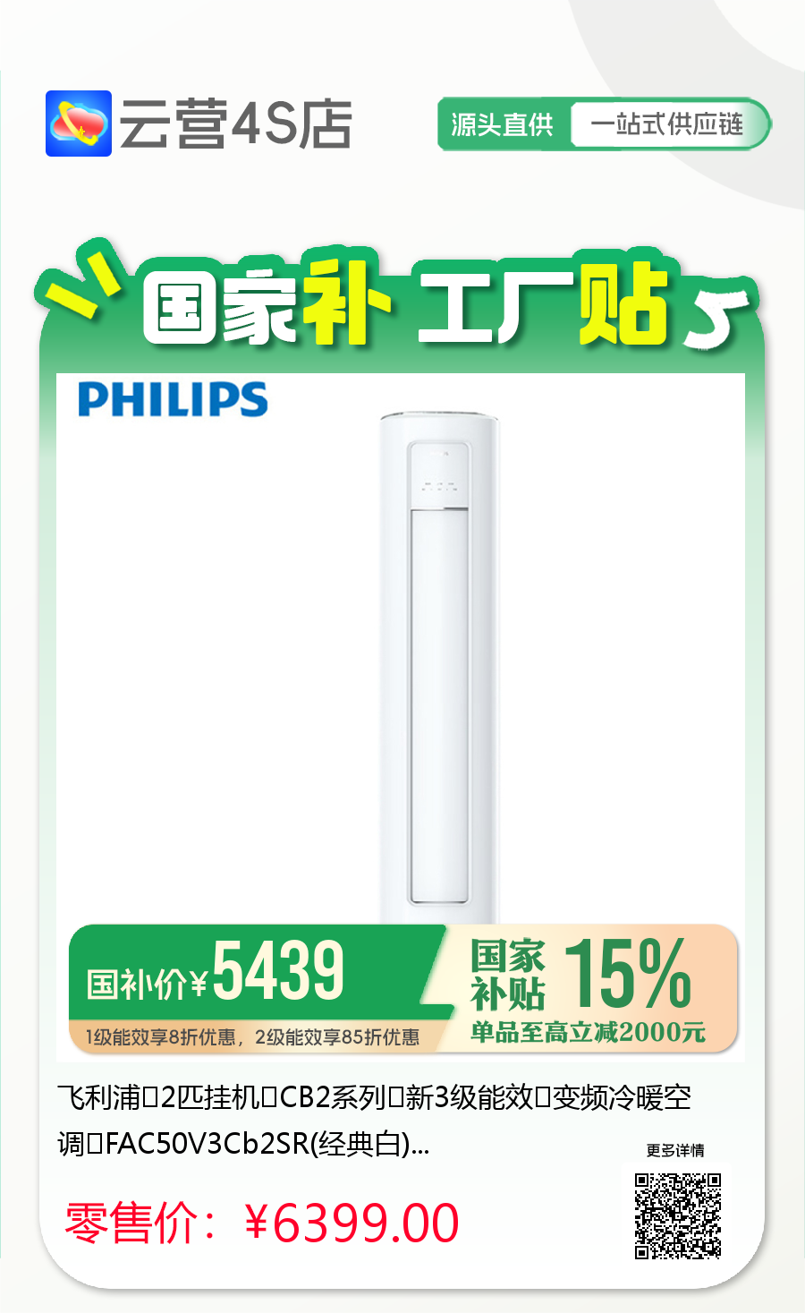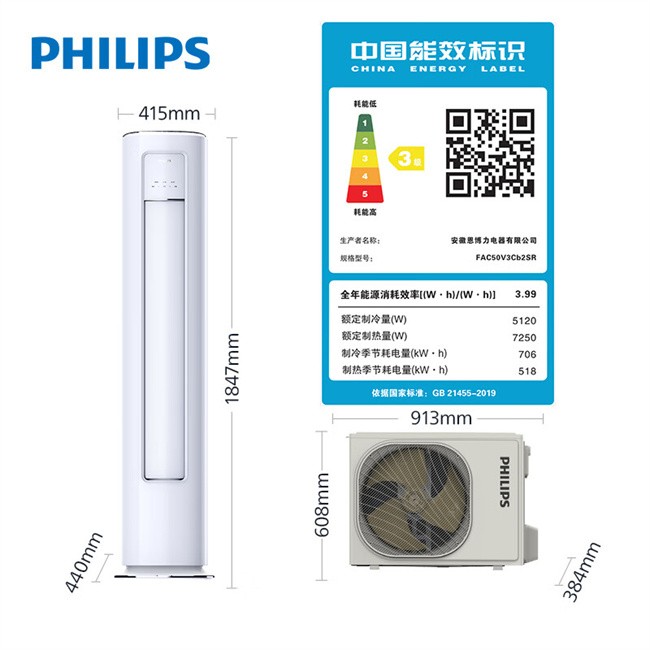 飞利浦 2匹挂机 CB2系列 新3级能效 变频冷暖空调 FAC50V3Cb2SR(经典白)