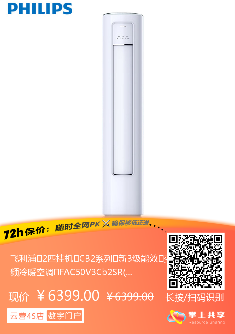 飞利浦 2匹挂机 CB2系列 新3级能效 变频冷暖空调 FAC50V3Cb2SR(冰川灰)