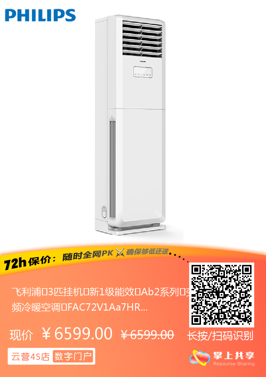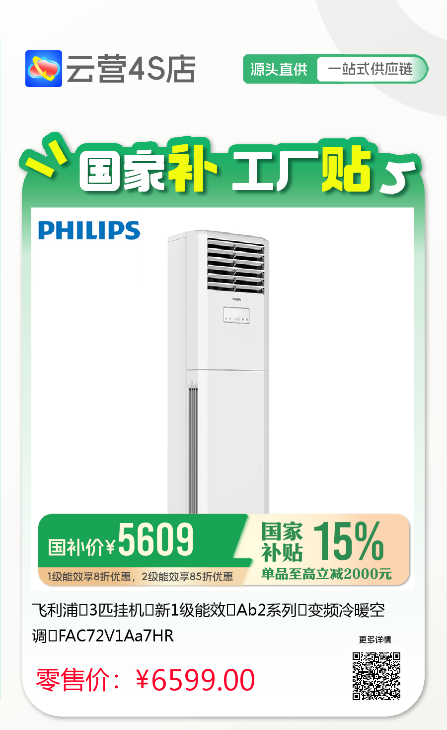 飞利浦 3匹挂机 新1级能效 Ab2系列 变频冷暖空调 FAC72V1Aa7HR