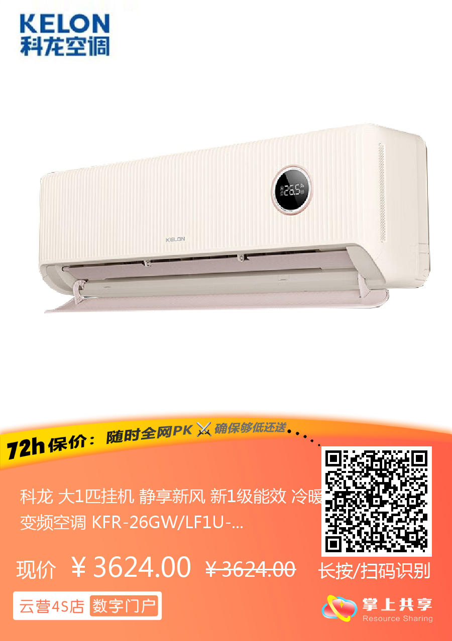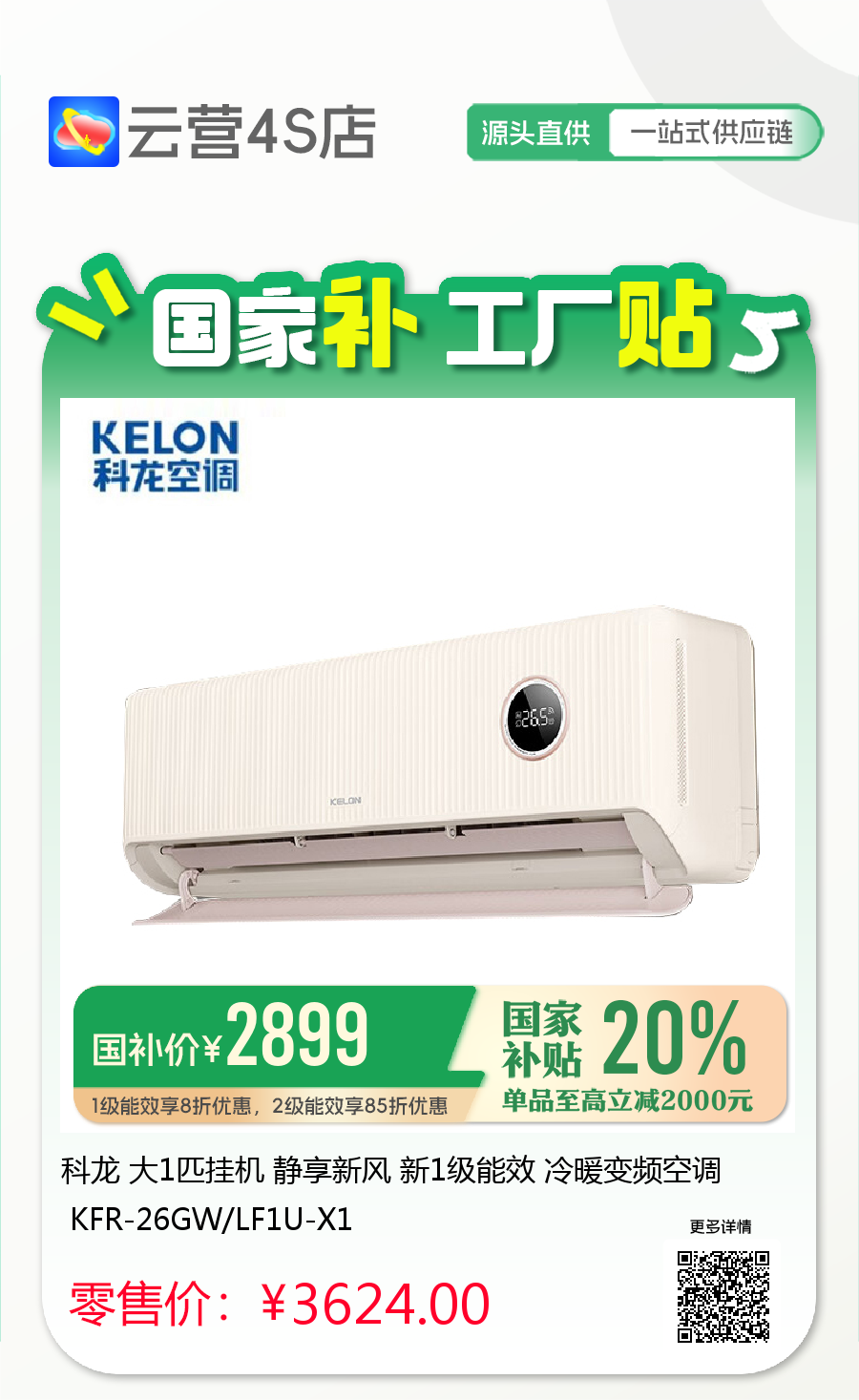 科龙 大1匹挂机 静享新风 新1级能效 冷暖变频空调 KFR-26GW/LF1U-X1