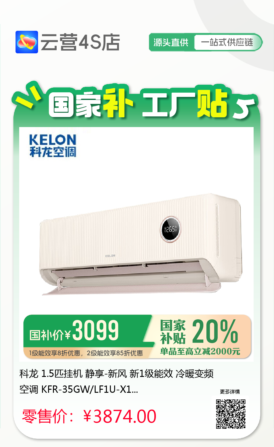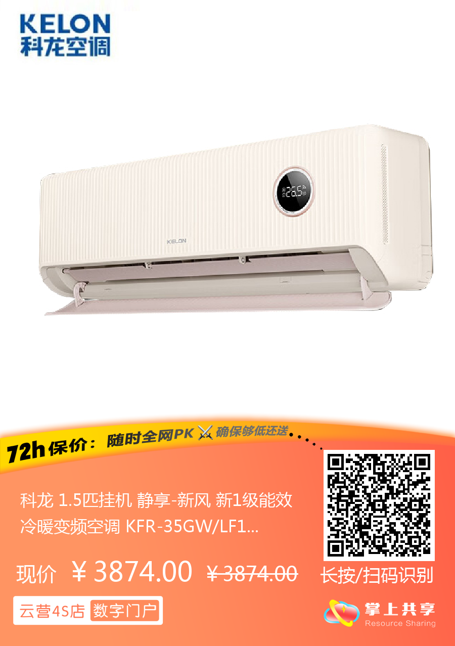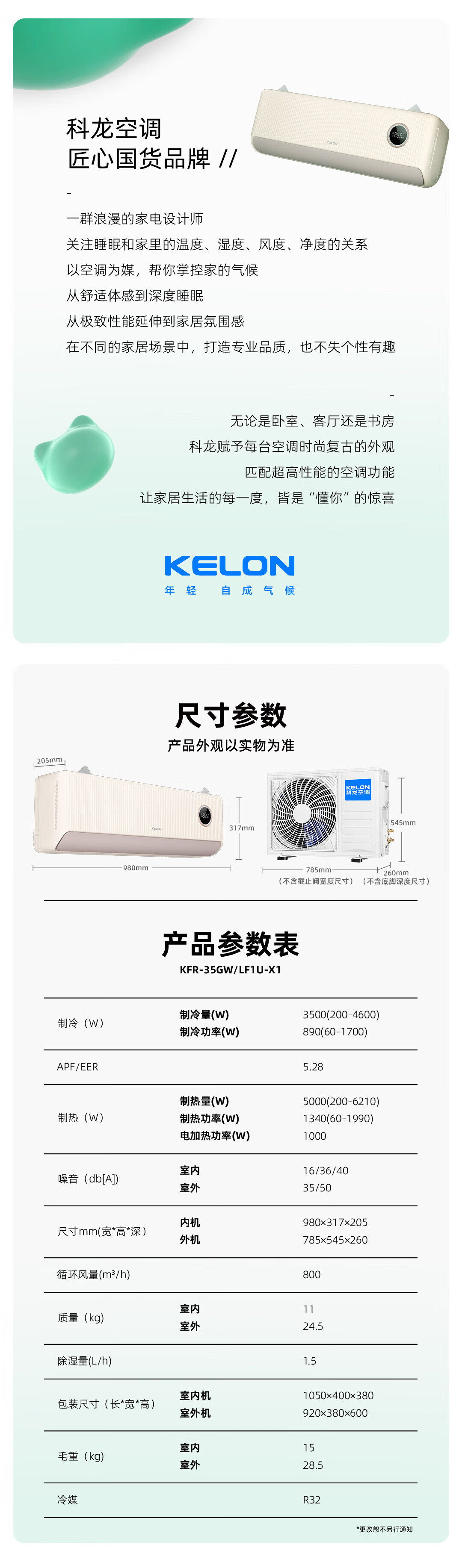 科龙 1.5匹挂机 静享-新风 新1级能效 冷暖变频空调 KFR-35GW/LF1U-X1