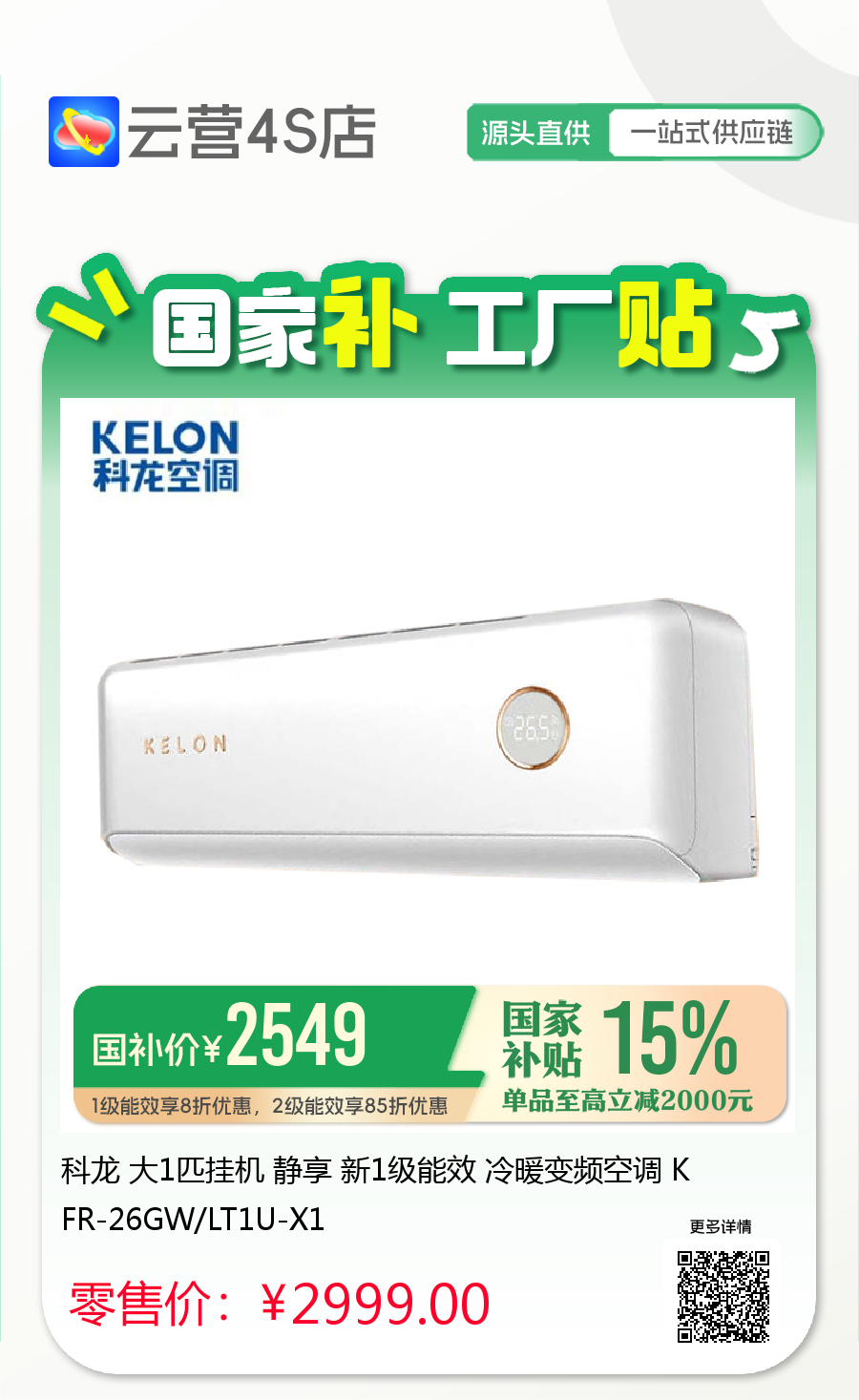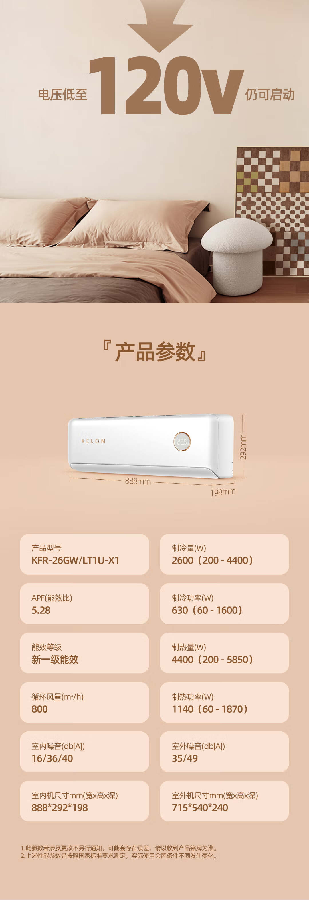 科龙 大1匹挂机 静享 新1级能效 冷暖变频空调 KFR-26GW/LT1U-X1