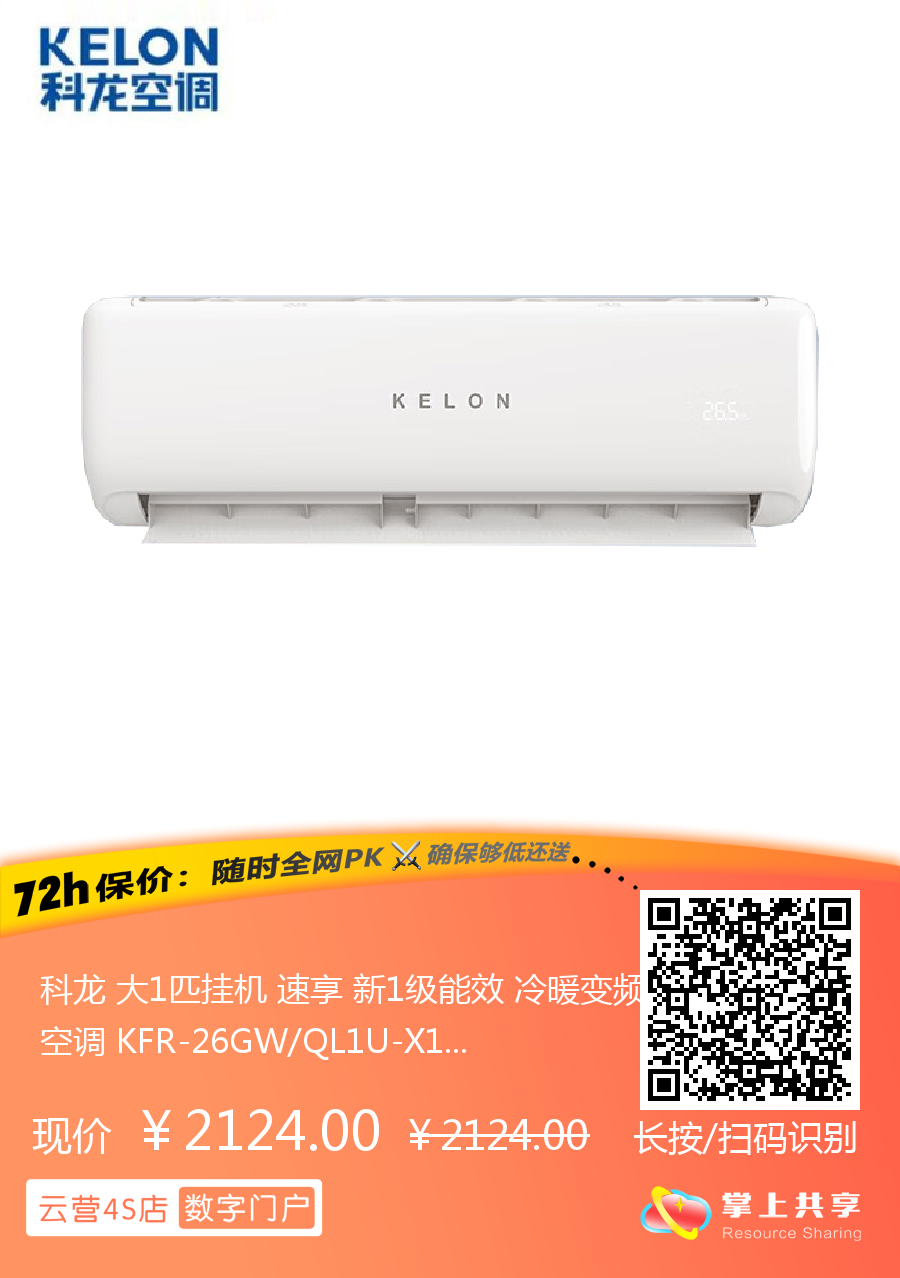 科龙 大1匹挂机 速享 新1级能效 冷暖变频空调 KFR-26GW/QL1U-X1
