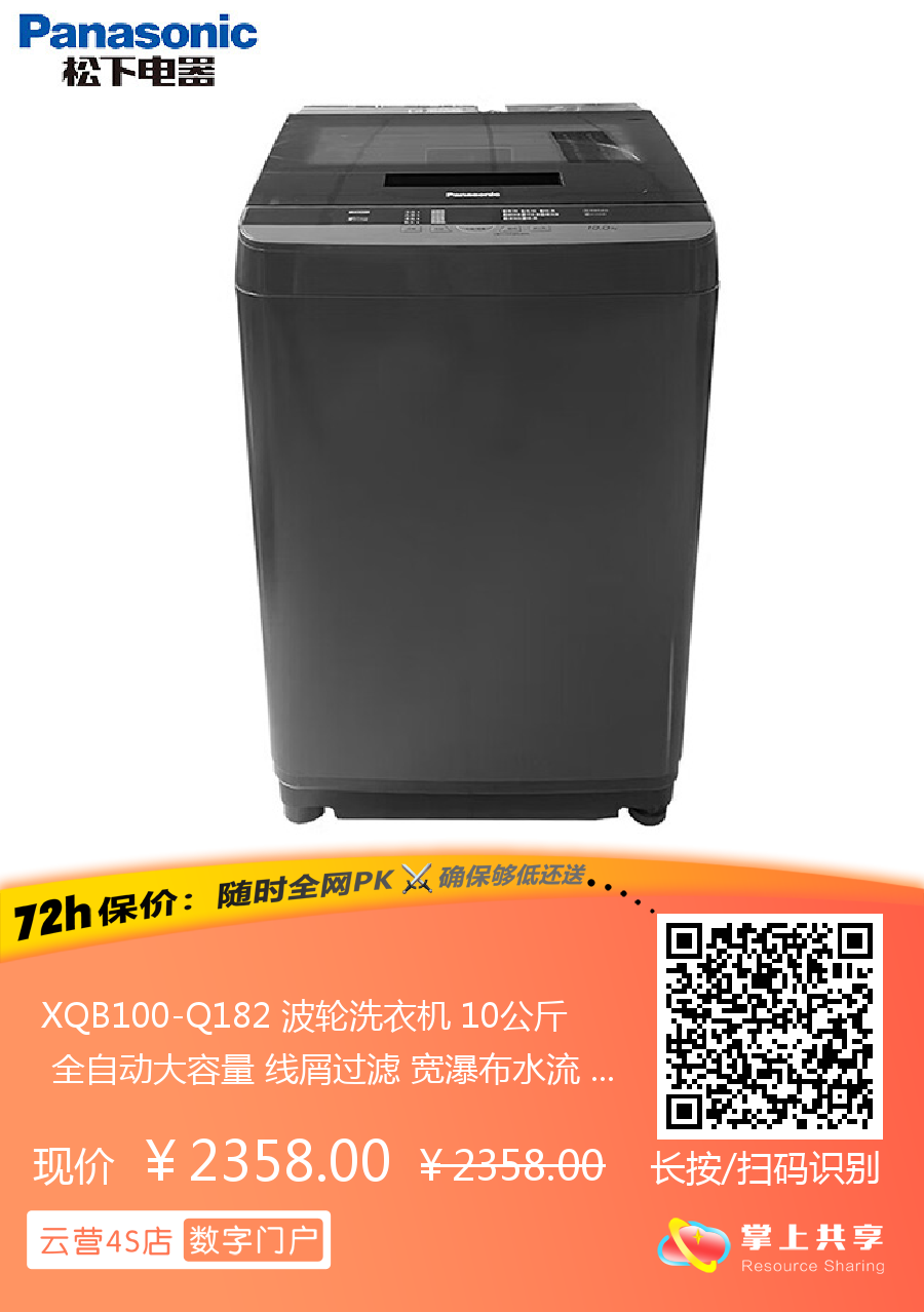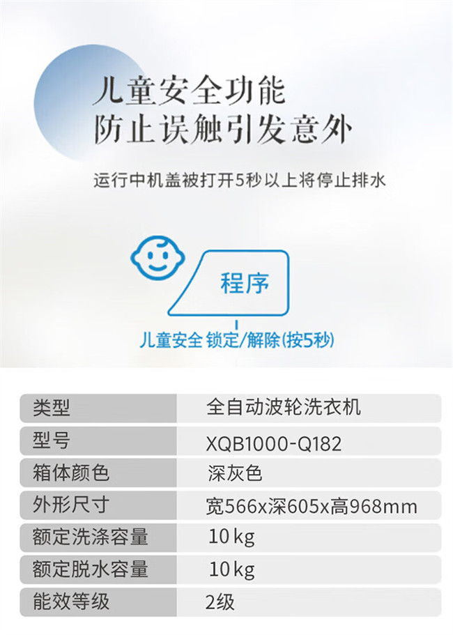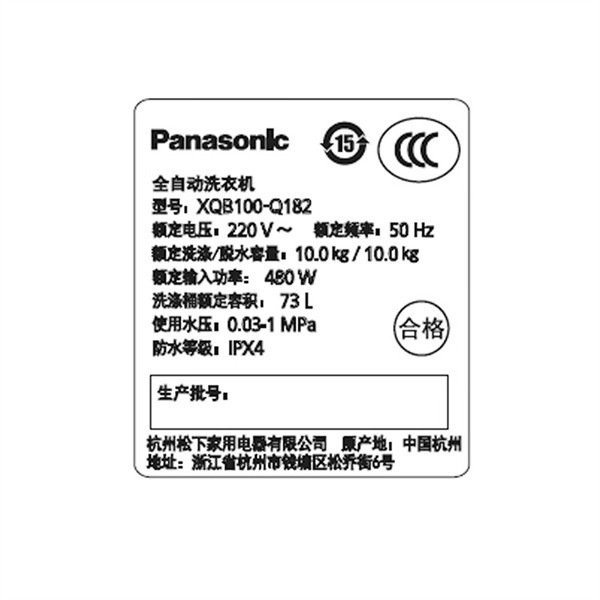 XQB100-Q182 波轮洗衣机 10公斤 全自动大容量 线屑过滤 宽瀑布水流 桶自洁免清洗 松下(Panasonic)