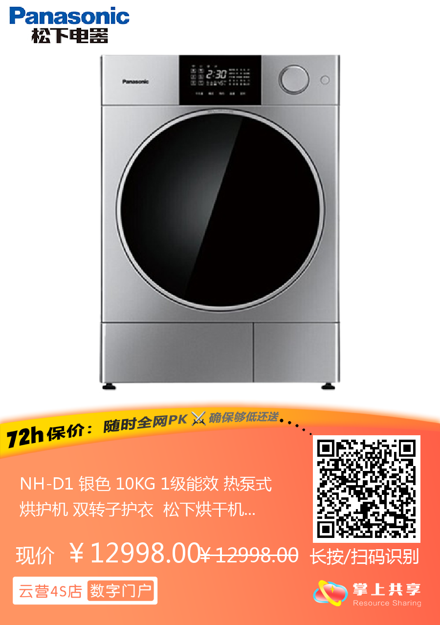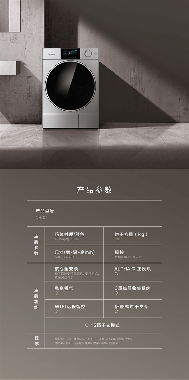 NH-D1 银色 10KG 1级能效 热泵式烘护机 双转子护衣 松下烘干机