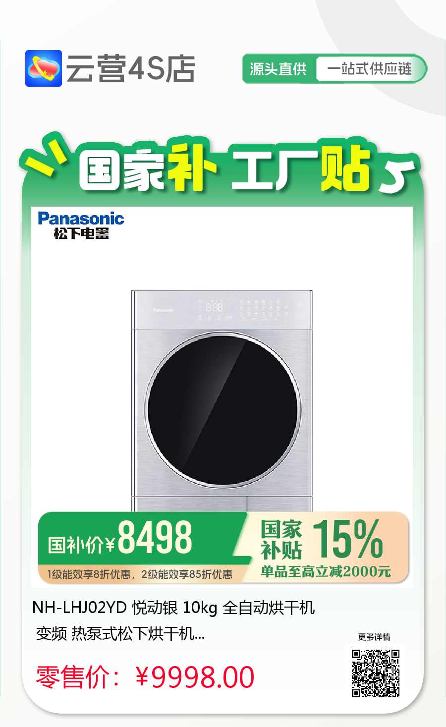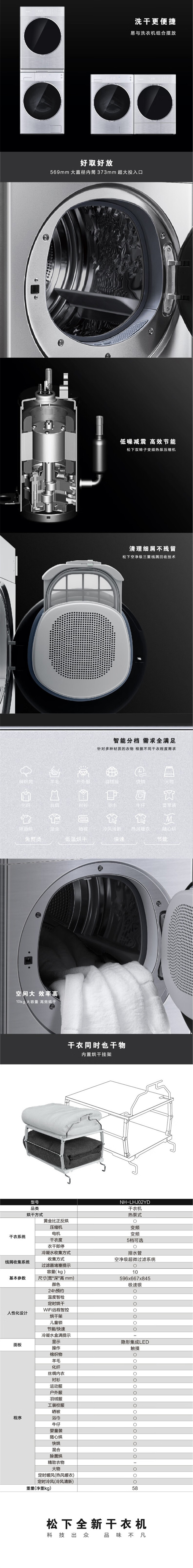 NH-LHJ02YD 悦动银 10kg 全自动烘干机 变频 热泵式松下烘干机