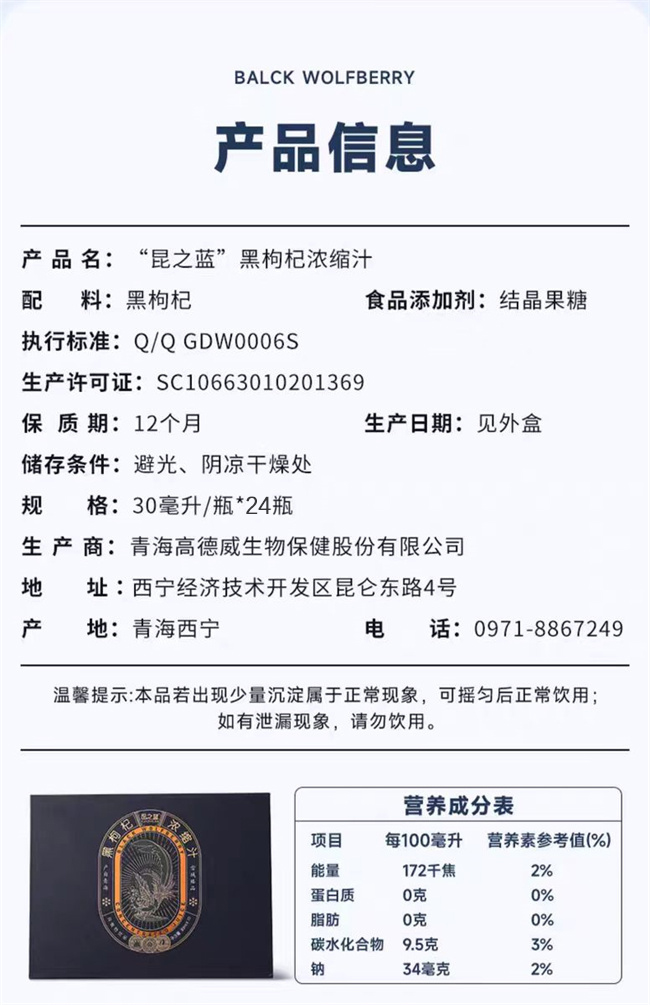 黑枸杞浓缩汁 礼盒装 抗氧化 青海优品 提纯浓缩 美容养颜 富含花青素