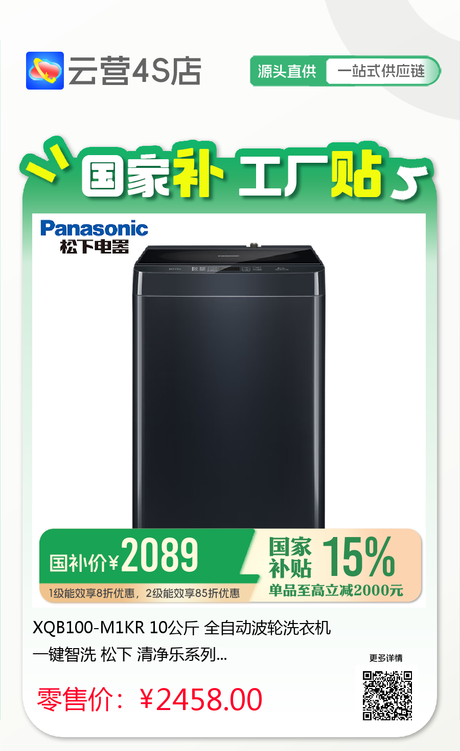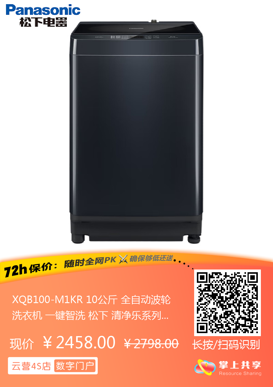 XQB100-M1KR 10公斤 全自动波轮洗衣机 一键智洗 松下 清净乐系列