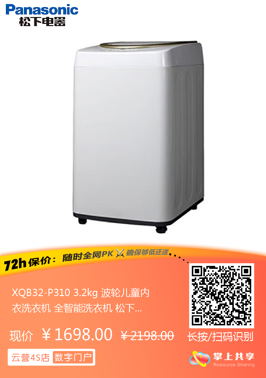 XQB32-P310 3.2kg 波轮儿童内衣洗衣机 全智能洗衣机 松下