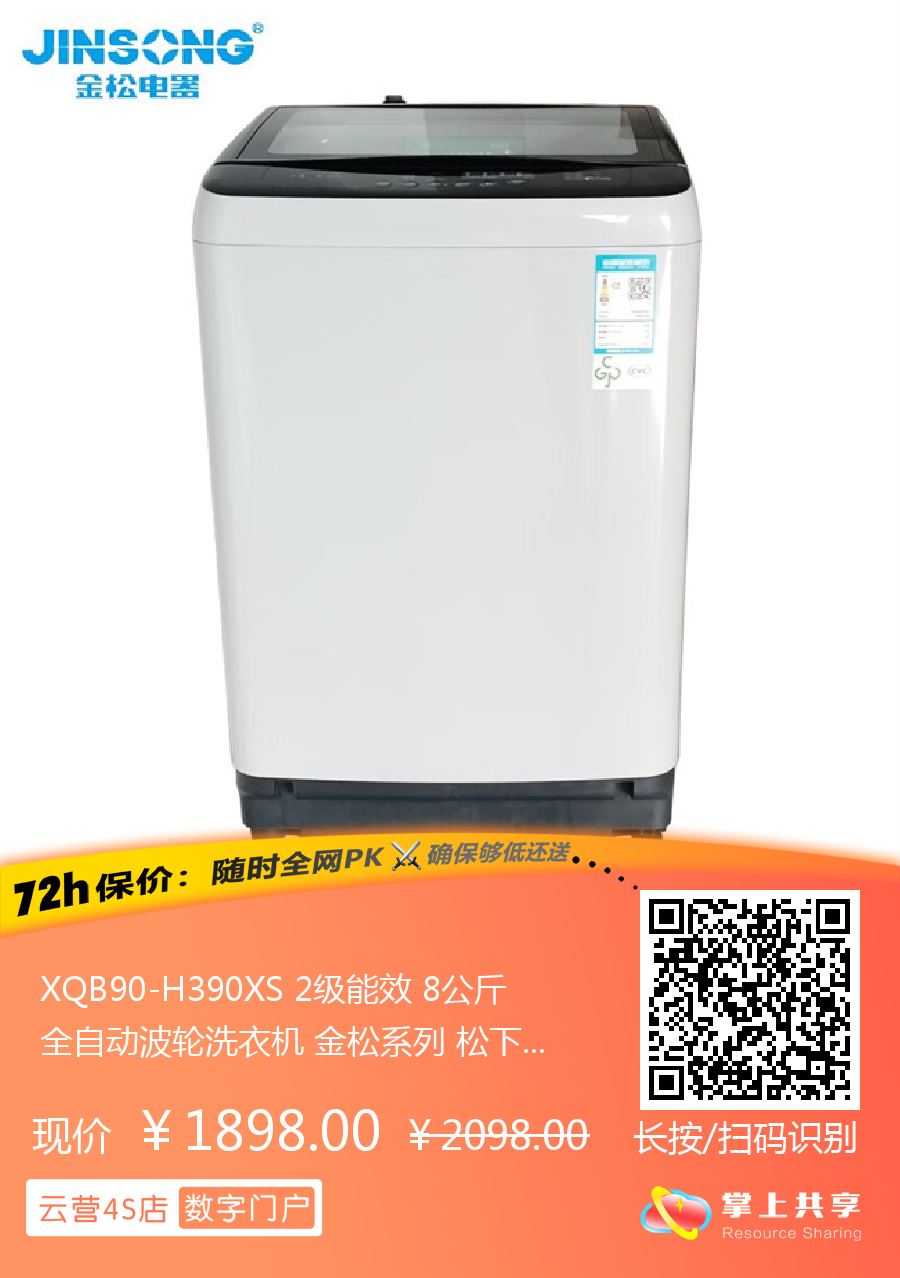 XQB90-H390XS 2级能效 8公斤 全自动波轮洗衣机 金松系列 松下